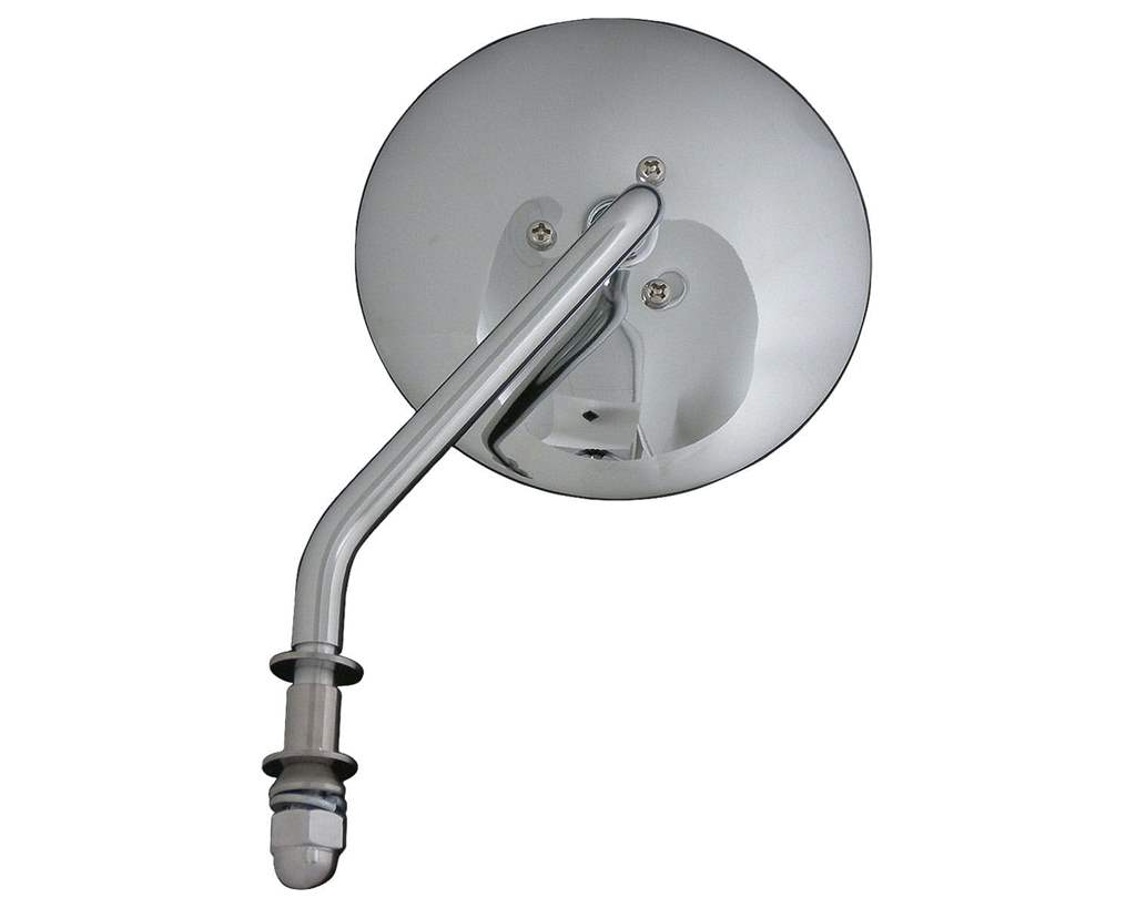 色:クロームサイズ:ミラー直径 4インチ(約102mm)ステー 全長約115mm(取り付け部除く)OEM品番:91931-92T素材:スチール内容物:ミラー本体×1個注意事項:左用です。商品説明:4インチのラウンドミラーです。裏面に段差が無い、スムースな形状が特徴です。純正は大きくてかっこ悪い、ハンドル周りをすっきりさせたい。そんな人にお勧めです。EVO以降の純正ハンドルマウントのウインカーも使用可能です。国産につける場合はネオファクトリー製ミラークランプを使ってください。