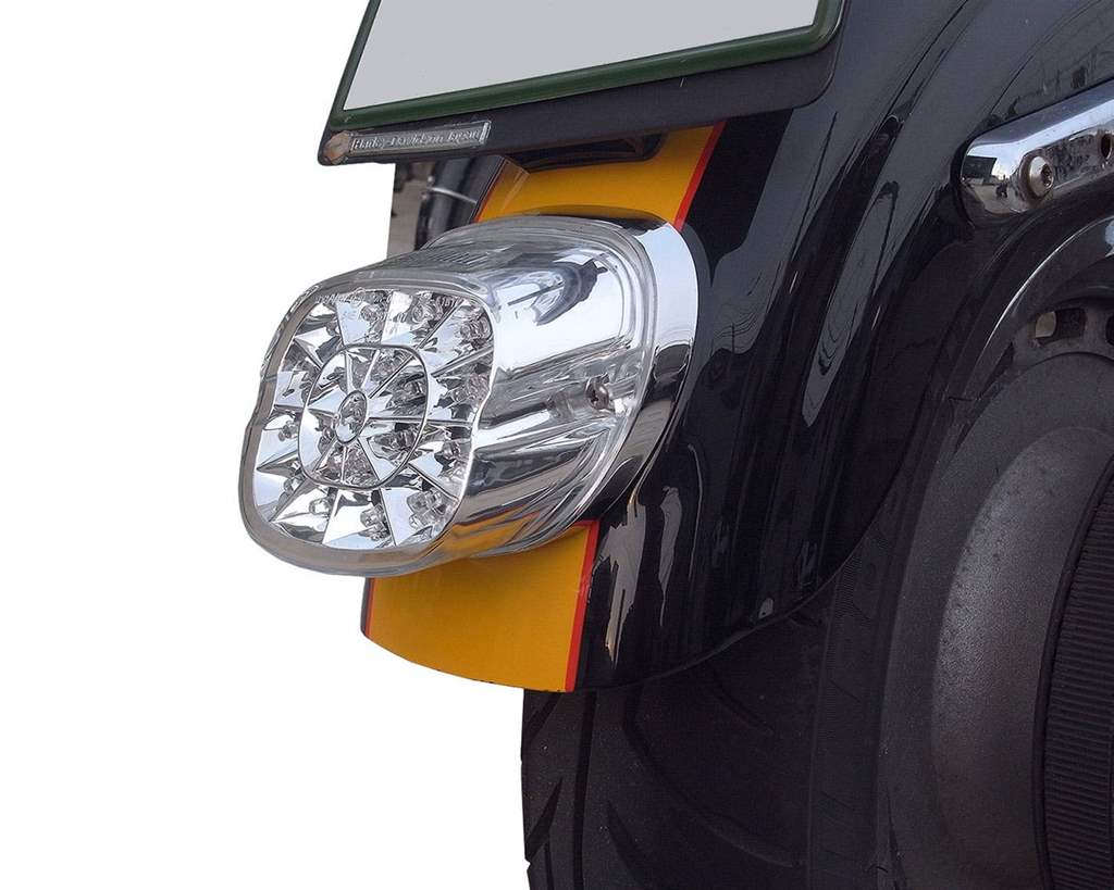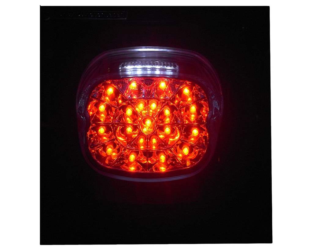 色:本体:クローム レンズ:クリアテールライト発光色:赤 ナンバー灯発光色:白サイズ:上部厚さ:約63mm適合車種:1999年式以降のFXST、FLSTC、FLSTF、FLSTN、FLT及びダイナ、スポーツスター素材:テールライト本体&レンズ:プラスチックリフレクター:プラスチック内容物:テールライト本体×1個カプラー×2本注意事項:生産ロットにより純正テールライトの4Pカプラーにおける青色配線の端子位置が異なります。純正カプラーに合わせて青色配線の端子位置を変更してからお取り付け下さい。商品説明:LEDタイプの薄型テールライトキットです。99年式以降のテールランプをベースから取り外し、カプラーオンで装着が可能。テールライトの発光色は赤色、ナンバー灯は白色LEDを採用しているので、車検にも対応するスグレモノです。