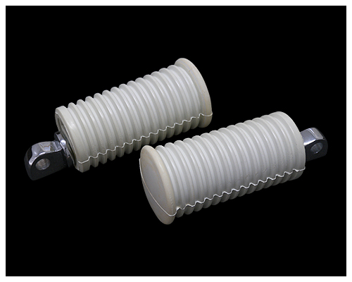 色:ホワイトサイズ:全長:約125mm(マウント部含む)直径:約45mm適合車種:棒状のフットペグを採用しているほとんどのハーレー素材:スチール&ゴム内容物:フットペグ×2本1セット注意事項:購入の際にはご自分のバイクのフットペグ形状を確認してください。※2011年以降のXL1200X/V/C及びFXSには取り付けできません。商品説明:純正のような全身ゴムのフットペグです。中空構造のゴムが、エンジンからの振動を和らげてくれます。オールドスクール色の強い白です。カスタムにはぴったり。純正フットペグのリプレイスにどうぞ。また、エンド部分が取り外し可能になっているので、気分で変えてみるのもありですね。2011年以降のXL1200X/V/Cに取り付ける際はフットペグマウントコンバージョンキット013502(クローム)/013503(ブラック)が必要となります。