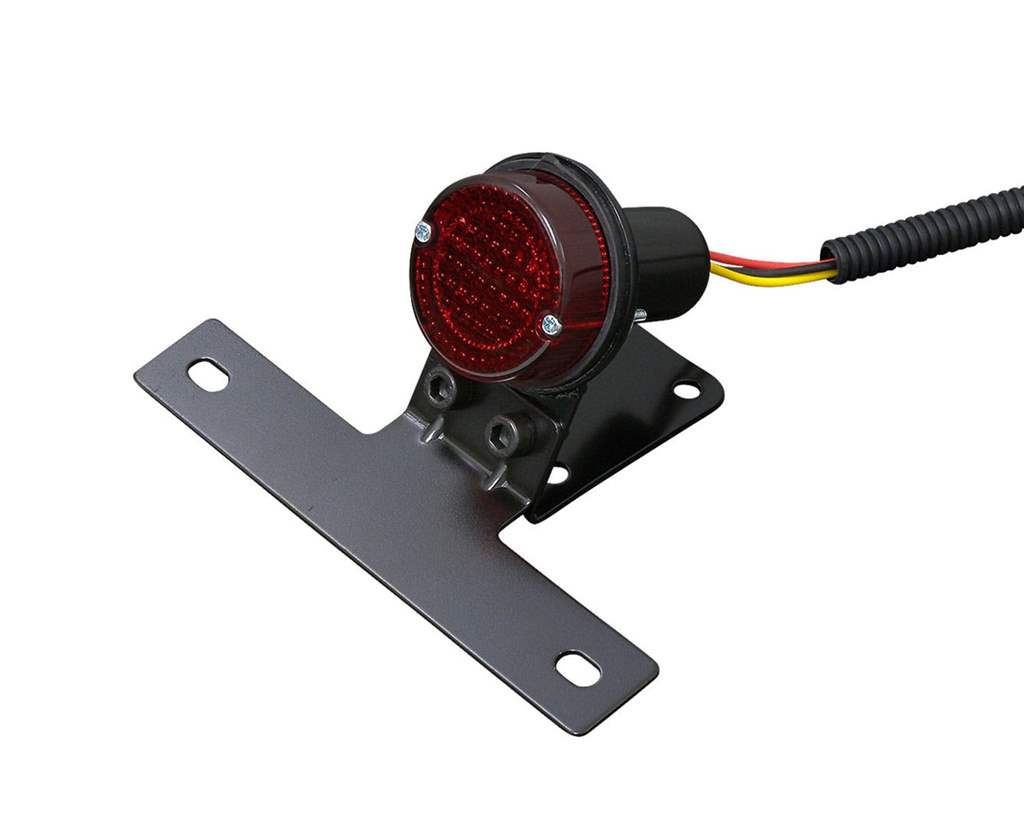 色:本体:ブラック レンズ:レッドナンバー灯レンズ:クリアーサイズ:レンズ部分直径:約45mm 厚さ:約15mmステー部分横:約147mm 縦:約100mm口金形状:BAY15D ワット数:21/5W素材:テールライト本体:スチール レンズ:プラスチック内容物:テールライト本体×1個注意事項:この商品は汎用品の為取り付ける際にフェンダーや配線等の加工が必要になります。(ネオファクトリー社では取り付けに関する御質問等には御案内しかねます。)商品説明:最近流行りのレトロタイプです。ボバー、クラシックカスタムに使われています。しかし!!これをハイテックチョッパーに使うと非常にかっこ良いです。ナンバー灯機能付き。配線説明テールランプ:黒ブレーキランプ:赤アース:黄
