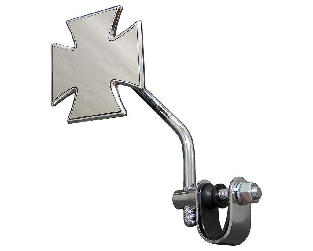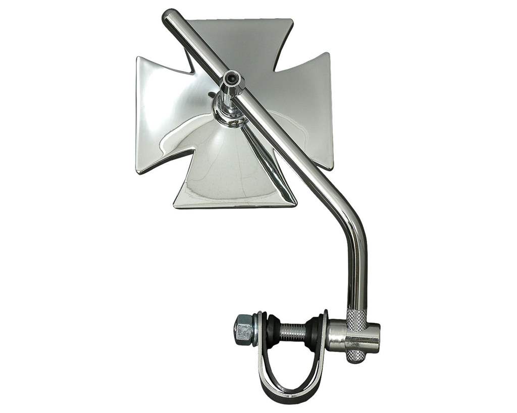色:クロームサイズ:素材:ミラー部:ガラスボディ:スチール内容物:ミラー本体×1本(クランプ付き)注意事項:1インチバー用。左右兼用です。ステム先端のローレット加工有無は製造ロットにより変動します。予めご了承ください。商品説明:マルチーズクロス型のミラーです。ハンドル周りをカスタムして純正スイッチハウジングを取り外した場合には、ハンドルバーに直接取り付けられるクランプ付きのこちらのタイプがお勧めです。ミラー部分もしっかりガラス製でただの飾りではありません。デザイン重視の形状ですが、ミラー面は大きめなので、見た目以上に視認性は良好です。ミラーとステムは芋ネジで固定するタイプですので、位置の調整が可能です。 ステム部分は芋ネジで留めるので、位置の調整が可能です。1インチバーであれば国産バイクにも使用可能です。