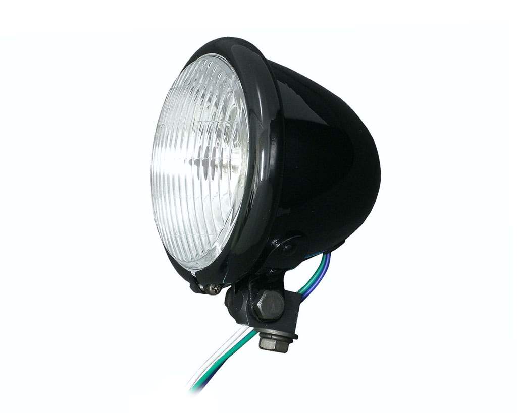 色:ブラック(ツヤあり)サイズ:4-1/2インチ(約114mm) ブロックのボルトピッチ:3/8-16素材:外側ケース:スチール レンズ:ガラスリフレクター:プラスチック内容物:ヘッドライト本体(H4バルブ 35/35W付き)×1個 4-1/2inヘッドライトブロック×1個注意事項:!注意!この商品にはH4バルブ35/35Wのみ適合します。それ以外のバルブは適合しません。配線色HI:青、LO:白、アース:緑仕様は予告無く変更する場合が御座います。取り付け前にご確認下さい。取り付けの際は純正のボルトを御利用頂くか、3/8-16のピッチのボルトを御用意下さい。旧仕様の000652とは塗装の色が異なります、御注意下さい。商品説明:4.5インチいわゆるベーツタイプです。12Vカスタム用のヘッドライトです。バルブタイプなので球が切れても出費がかさみません。ヘッドライト上部にハイビーム灯付き(青色)バルブはH4のハロゲンです。かなり小さいのでカスタムには最適。フロントビューがすっきりしますよ。汎用なので何にでも使えますが、加工が必要です。レンズが割れてしまったら4-1/2inヘッドライトレンズ、もしくは4-1/2inヘッドライトブルーレンズをどうぞ。