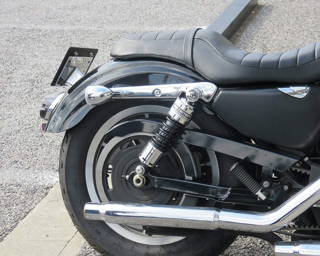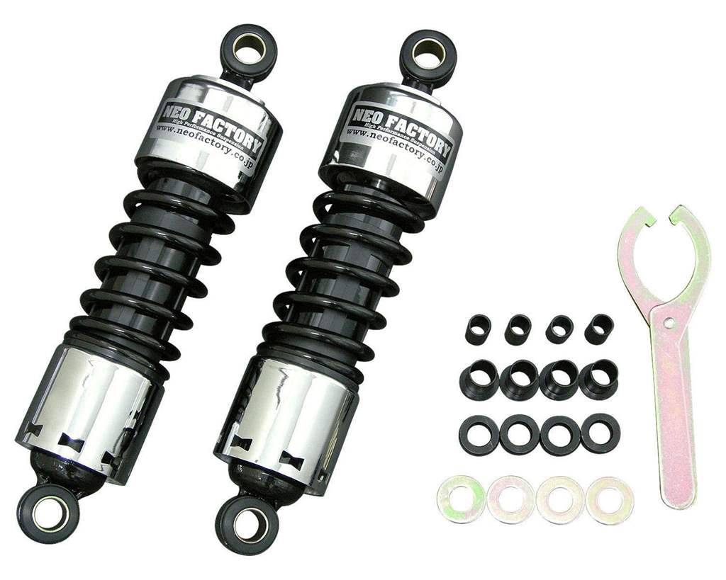 色:カバー:クローム スプリング:ブラックサイズ:取り付け部芯間11インチ(約280mm)全長約310mm適合車種:2004年式以降のXLモデル素材:スチール内容物:写真にてご確認下さい。注意事項:必ずRフェンダーとベルトガードのクリアランス確認及びショックアブソーバーの上下アライメント確認を行ってください。必要に応じてフェンダー、ベルトガードをカットして使用してください。車高が変わるため、サイドスタンドの変更が必要になる可能性があります。商品説明:11インチリアショックにコントラストカラーが登場!車高が下がる事によってカスタム感が強くなりますよ。シート高も下がりますので足つき性も良くなります。プリロード調整用のアジャストツールも付属していますので乗り方に合わせて調整して下さい。プリロードは5段階調整です。プリロードを調整する際には浸透性潤滑剤(ラスペネ等)を使用してから回すと、スムーズに回ります。※右回しでプリロードが掛かり、左回しで緩みます。※04y-XL用は内部にストローク量を制限するカラーが備わっています。