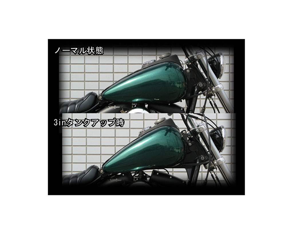 適合車種:97年〜17年式のダイナモデル(2006年以降のFXDWGを除く)内容物:画像にてご確認下さい。注意事項:ハンドルを切った際にタンクと干渉する箇所がある場合は、パーツの交換や加工、工夫等が必要です。※タンク傾きにより燃料計装着車は、残量表示が変化しますので御注意下さい。各種ホースは必要に応じて御交換下さい。商品説明:ガソリンタンクを少し上に持ち上げるタンクアップマウントです。これをつけることで、タンクとエンジンに隙間が出来て、エンジンの造形がより際立って見えます。ヘッド部分を掃除しやすくなるというメリットもあるとか・・・。小さいパーツですが、車輌のイメージは結構変わるパーツです。