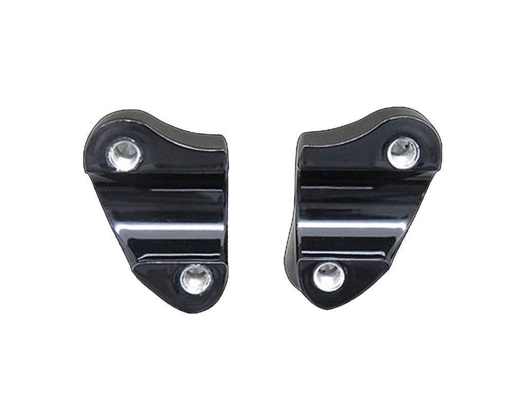 色:ブラックサイズ:高さ約140mm(底部からハンドル中心までです。)直径:約29mm適合ライザーボルトサイズ:1/2-13適合車種:1in径ハンドルバー仕様車(スプリンガー・V−ROD・07年以降のファットボーイには適合しません)デュースは専用ソリッドマウントを使用することで対応可能です。OEM品番:素材:アルミ内容物:ライザー×2本(左右1セット)注意事項:この商品はトップクランプが必要になります。一部高年式車両でメーターとトップクランプが一体式のモデルに取り付ける場合、クランプ裏側の突起がライザーに干渉する可能性がありますので、その際は削る等の小加工が必要になります。トップクランプボルトのネジ穴は貫通しておりません。純正ボルトを流用する場合はカットする必要があります。トップクランプのボルト位置が左右で平行になっているタイプ(ボルト位置がシート側から見て逆台形でないタイプ)は対応しません。トップクランプボルトの締め付けは均一に行って下さい。オーバートルクはライザー本体を破損する恐れがあります。商品説明:5-1/2inのストレートライザーです。プルバックだとハンドルがタンクに当たるという場合にオススメです。特にドラッグバーに換える場合はこの位の高さが良いと思います。フリスコスタイルにもピッタリです。ハンドルがタンクにヒットしないようにご確認下さい。