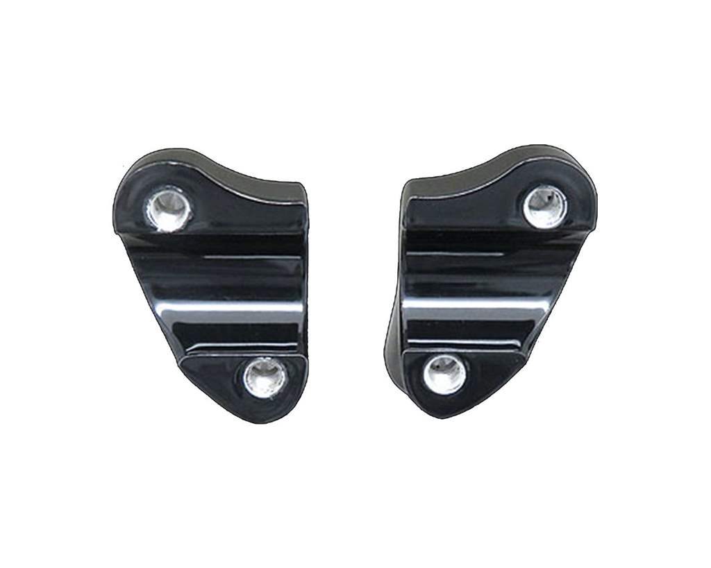 色:ブラックサイズ:高さ約89mm(底部からハンドル中心までです。)プルバック約30mm(底部中心からハンドル中心までです。)ライザーボルトサイズ:1/2-13適合車種:1in径ハンドルバー仕様車(スプリンガー・V−ROD・07年以降のファットボーイには適合しません)デュースは専用ソリッドマウントを使用することで対応可能です。OEM品番:素材:アルミ内容物:ライザー×2本(左右1セット)注意事項:この商品はトップクランプが必要になります。一部高年式車両でメーターとトップクランプが一体式のモデルに取り付ける場合、クランプ裏側の突起がライザーに干渉する可能性がありますので、その際は削る等の小加工が必要になります。トップクランプボルトのネジ穴は貫通しておりません。純正ボルトを流用する場合はカットする必要があります。トップクランプのボルト位置が左右で平行になっているタイプ(ボルト位置がシート側から見て逆台形でないタイプ)は対応しません。トップクランプボルトの締め付けは均一に行って下さい。オーバートルクはライザー本体を破損する恐れがあります。商品説明:3-1/2inのプルバックライザーです。ハンドルがタンクにヒットしないようにご確認下さい。