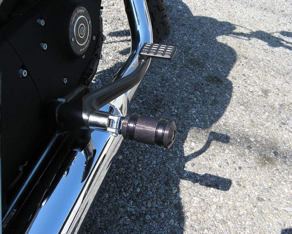 色:ブラックサイズ:長さ約70mm 太さ約40mm適合車種:オス型のフットペグを採用しているハーレー素材:アルミ内容物:フットペグ×2本1セット注意事項:購入の際にはご自分のバイクのフットペグ形状を確認してください。※2011年以降のXL1200X/V/C及びFXSには取り付けできません。※2枚目画像は取り付けイメージです。商品説明:NEOオリジナルのアルミフットペグで、ローレットデザインの渋いブラックです。攻める貴方にショートペグ。これでこれできわどいコーナリングでもフットペグが削れることはありません!同じ4リブブラックタイプのシフトペグやグリップもあるのでデザインを揃えるとおしゃれです。2011年以降のXL1200X/V/Cに取り付ける際はフットペグマウントコンバージョンキット013502(クローム)/013503(ブラック)が必要となります。