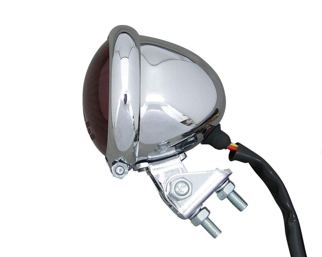 色:本体:クローム レンズ:赤サイズ:レンズ部直径:約48mm 本体直径:約57mm本体厚み:約56mmマウントボルトサイズ:No10-32×5/8適合車種:汎用素材:本体:スチール レンズ:プラスチック内容物:テールライト本体×1個注意事項:この商品は汎用品の為取り付ける際にフェンダーや配線等の加工が必要になります。(ネオファクトリー社では取り付けに関する御質問等には御案内しかねます。)ナンバー灯は付属しておりません。マウントボルトのサイズ・ピッチは予告無く変更となる場合がございます。予めご了承下さい。商品説明:ベーツへッドライトを模した小ぶりなテールライトです。中身のバルブをLEDにしたことで、視認性もよくなっています。サイドマウントやフェンダーに埋め込むなど、アイデア次第で色々なスタイルを楽しめますよ!配線説明赤→ブレーキ黄→テール黒→アース