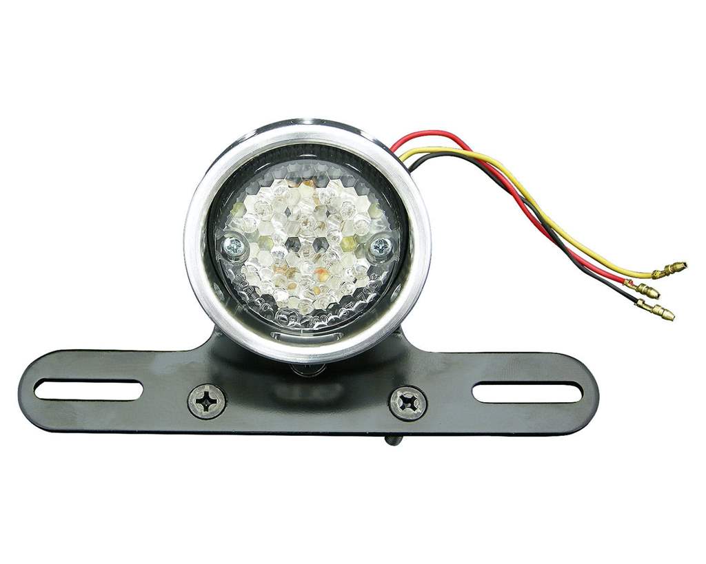 色:本体:アルミ マシニング仕上げ レンズ:クリアーナンバー灯レンズ:クリアーサイズ:リム径:約70mm リム+レンズ部厚み:約32mmステー取り付け部 横:約176mm 縦:28mmステー厚み:約3mm適合車種:汎用素材:本体:アルミ レンズ:プラスチックナンバー灯レンズ:プラスチック内容物:テールライト本体×1個注意事項:この商品は汎用品の為取り付ける際にフェンダーや配線等の加工が必要になります。(ネオファクトリー社では取り付けに関する御質問等には御案内しかねます。)商品説明:ボバースタイルに相性抜群のテールライトです。中身のバルブをLEDにしたことで、視認性もよくなっています。小さいながらしっかりナンバー燈も付いてます!サイドマウントやフェンダーに埋め込むなど、アイデア次第で色々なスタイルを楽しめますよ!配線色テールライト:黄ブレーキ:赤アース(−):黒