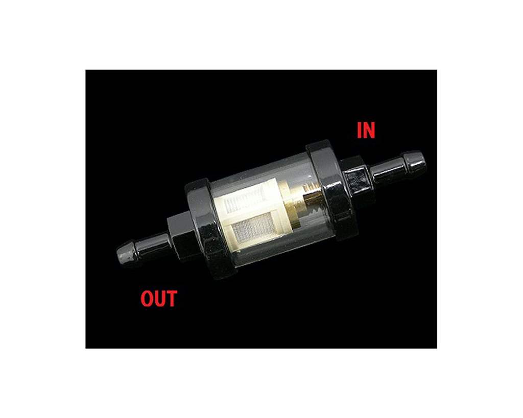 色:ブラックサイズ:長さ(筒部分):約37mm直径(ガラス部分):約24mm適合車種:1/4インチホースに対応素材:スチール&ガラス内容物:フューエルフィルター×1個注意事項:流れる向きは本体に記載されていますのでご確認ください。IN :タンク側OUT:キャブレター側商品説明:流れている様子がよく見えるクリアーのフューエルフィルターです。ちゃんとばらして掃除できます。スタイルにも燃費にもとてもいいです。見た目も引き締まるブラック!カスタムも実用性も抜群です!