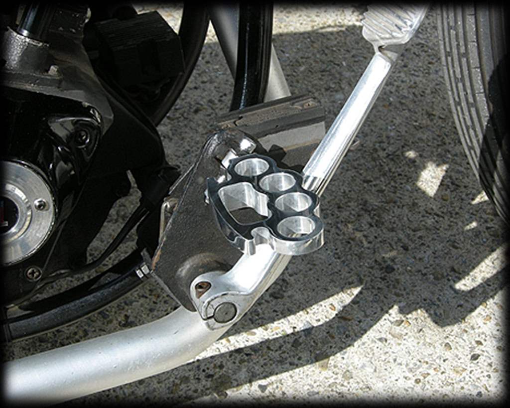色:ポリッシュサイズ:横幅:約120mm 縦幅:約60mm適合車種:棒状のフットペグを採用しているほとんどのハーレー素材:アルミ内容物:フットペグ×2本1セット注意事項:購入の際にはご自分のバイクのフットペグ形状を確認してください。※2011年以降のXL1200X/V/C及びFXSには取り付けできません。商品説明:メリケンサックを模した無骨なフットペグです。デザインだけでなく、足つき性もグッド!遊び心に溢れたフットペグです。2011年以降のXL1200X/V/Cに取り付ける際はフットペグマウントコンバージョンキット013502(クローム)/013503(ブラック)が必要となります。