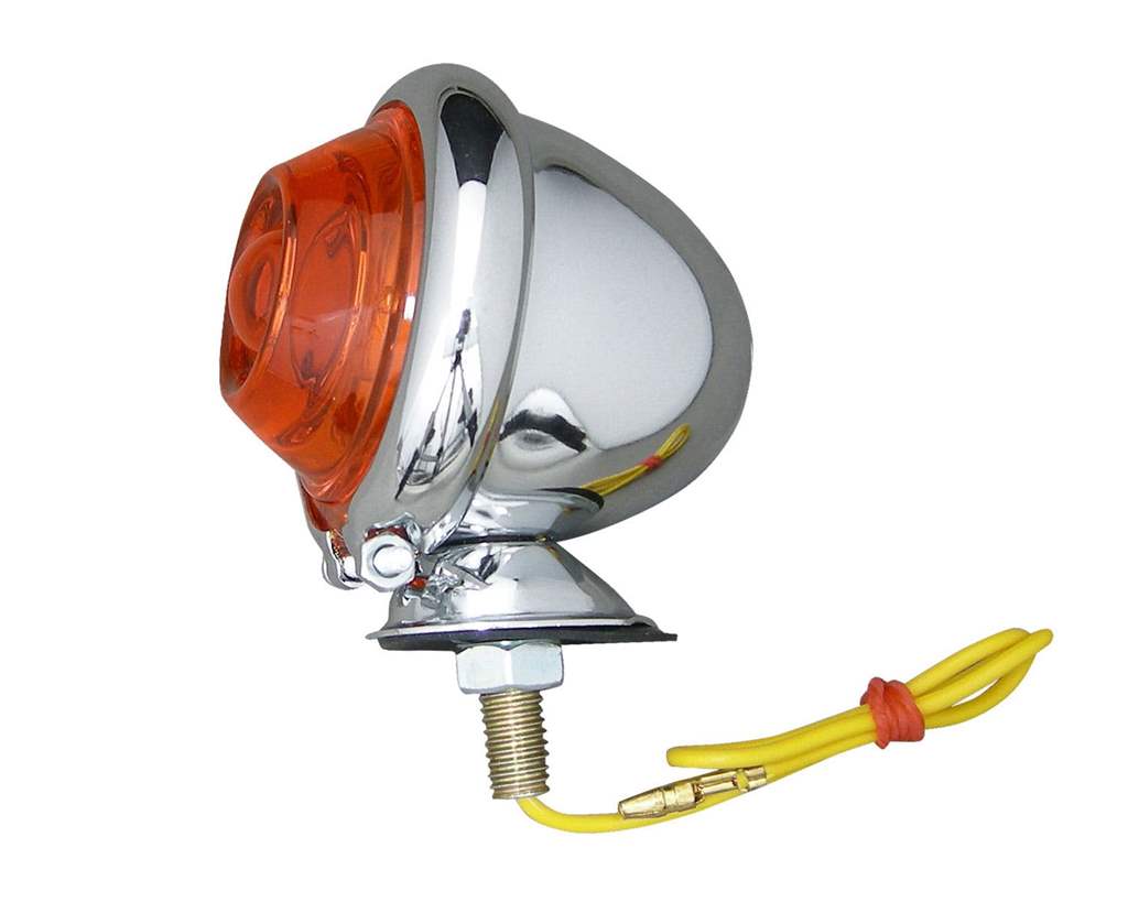 色:本体:クローム レンズ:オレンジサイズ:レンズ直径:約44mm本体直径:約58mm 奥行き:約60mmワット数:23W取付ボルト径:約8mmネジ突き出し量:約18mm素材:本体:スチール レンズ:プラスチック内容物:ウインカー×1個注意事項:車輌によっては抵抗値を替える必要があります。現在ご使用のウインカーのワット数をご確認ください。商品説明:オーソドックスなベーツタイプのへッドライトを模した、小ぶりなウインカーです。クラシカルなレンズでオールドスクールにぴったりです。