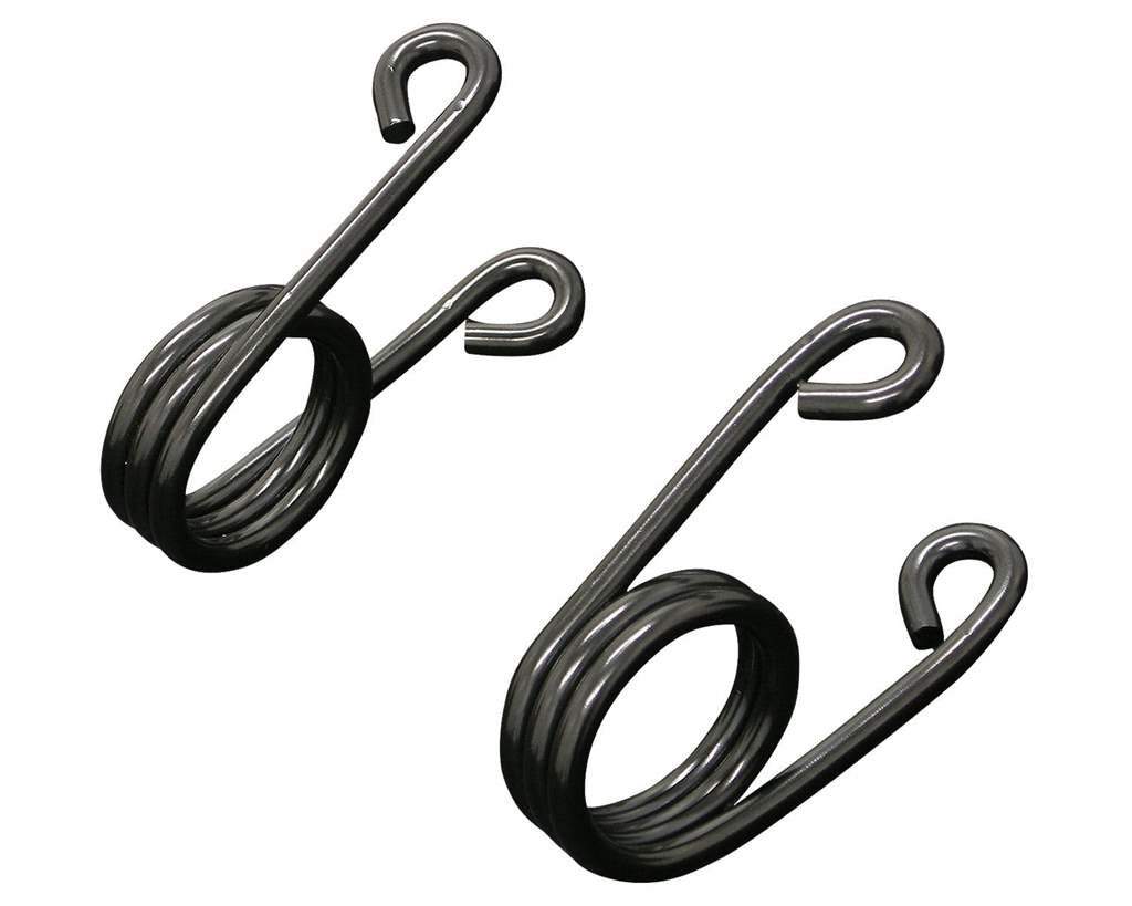 色:ブラック(パウダーコート仕上げ)サイズ:自由長:約60mmOEM品番:素材:スチール内容物:ヘアピンスプリング×2個(左右1セット)商品説明:結構探してる人が多いので入荷しました。しかも、なんと左右対称です。今までの販売されていた物は左右兼用(つまり右も左も同じ形)で、後ろから見るととてもバランスが悪かったのですが、ネオファクトリー社の商品は左右が違う形なので、バランスが良いです。しかも、ブラックとクロームで色も選べます。検討されている人は是非。