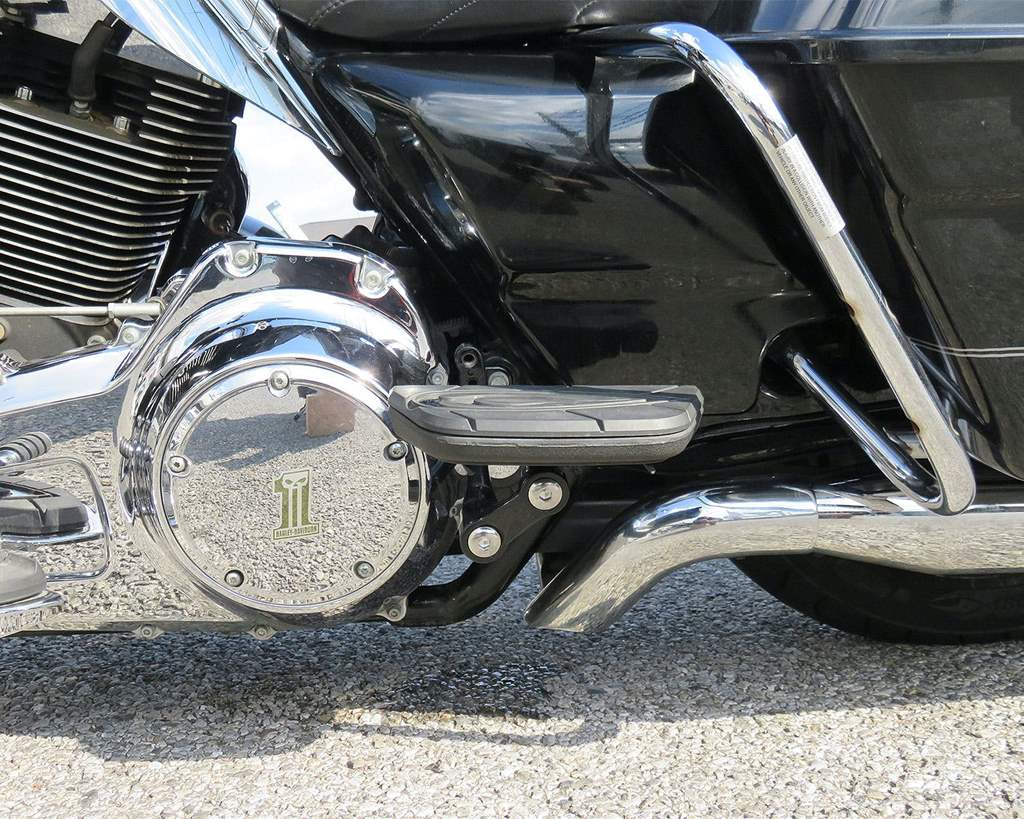 色:ブラックサイズ:調整幅:最も低い位置で標準位置から約51mm前方に移動、最も高い位置で標準位置から約64mm高くなります。適合車種:1993年式以降のツーリングモデルOEM品番:素材:スチール内容物:ステーセット×2(左右1個ずつ) 取り付けボルトセット×2セット注意事項:タンデム席専用品です。マフラーの形状により干渉する場合があります。サドルバッグ装着車両はサドルバッグを移設する必要があります。商品説明:若干タンデム時の足つきが悪い…そんな時にリアフロアーボードの位置を調整することが出来ます。調整式に変える事で運転手の足とタンデムの足が当たりづらくなったり、タンデムの人が足を置きやすくなります。