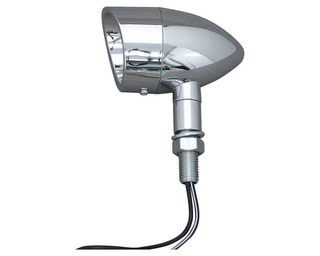 色:本体:クロームレンズ:オレンジサイズ:レンズ直径:約37mm本体直径:約44mm 奥行き:約73mm取り付けボルトサイズ:M10×1.25ボルト部分長さ:25mm口金形状:BA15S ワット数:23WOEM品番:素材:本体:スチールレンズ:プラスチック内容物:ウインカー本体×1注意事項:新しいハーレーに使うときには抵抗値を替える必要があります。現在ご使用のウインカーのワット数をご確認ください。製品出荷時にバイザーの位置が変わっている場合が御座います。バイザー部分を取り外し、使用する角度に合わせてバイザーを付け直して下さい。商品説明:チョッパーカスタムによく似合う砲弾型のウインカーです。バイザー付でハイスクールにもよく似合います。ちなみにバイザーは90度ずつずらす事が可能なので、取り付け位置にあわせてカッコよくキメて下さい!