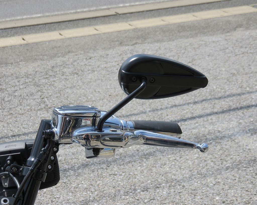 色:ブラックサイズ:ミラーサイズ 縦:約74mm 横:約155mmステー 全長:約115mm(取り付け部除く)素材:スチール内容物:ミラー本体×1個注意事項:純正と同様の広角ミラーになっています。左用です。商品説明:流線型のラインが美しいティアドロップ型のミラーです。純正でも採用されているデザインで、裏面にはクラシカルなデザインが入っています。純正と同様の広角ミラーになっているので、見易さも損ないません。ハイテックなカスタムから、ちょっとクラシカルな車両までハンドル周りのカスタムアップにどうぞ。●003395のミラーとの違いにつきまして●こちらのミラーでは裏側の梨地の面もブラックのパウダーコート塗装が行われております。