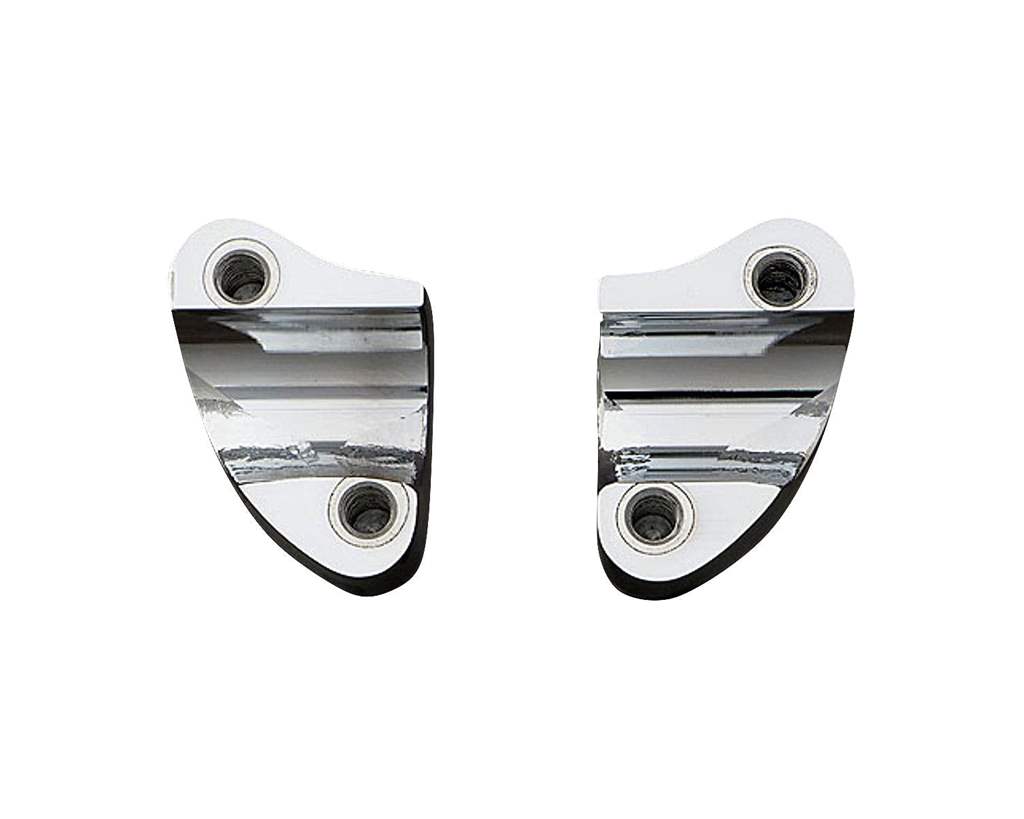 色:クロームサイズ:高さ約190.5mm(底部からハンドル中心までです。)ライザーボルトサイズ:1/2-13適合車種:1in径ハンドルバー仕様車スプリンガー・デュース・V−RODには適合しません。(デュースは専用ソリッドマウントを使用することで対応可能)また、ファットバー仕様車・ハンドルクランプとトップブリッジが一体式の車両も適合不可です。(07年式以降のFLSTF、XL1200X、FXS等)素材:アルミ内容物:ライザー×2本(左右1セット)注意事項:この商品はトップクランプが必要になります。一部高年式車両でメーターとトップクランプが一体式のモデルに取り付ける場合、クランプ裏側の突起がライザーに干渉する可能性がありますので、その際は削る等の小加工が必要になります。トップクランプボルトのネジ穴は貫通しておりません。純正ボルトを流用する場合はカットする必要があります。トップクランプのボルト位置が左右で平行になっているタイプ(ボルト位置がシート側から見て逆台形でないタイプ)は対応しません。トップクランプボルトの締め付けは均一に行って下さい。オーバートルクはライザー本体を破損する恐れがあります。商品説明:7.5"のプルバックライザーです。ハンドルがタンクにヒットしないようにご確認下さい。とにかく高くしたい場合にどうぞ。
