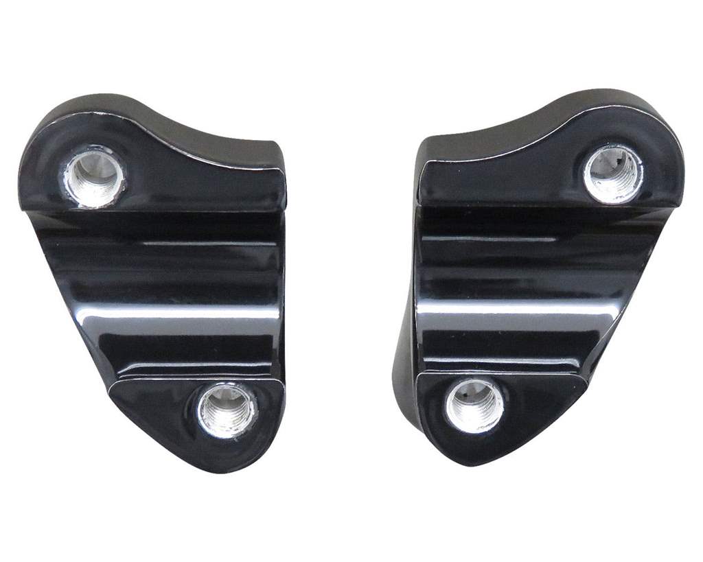 色:ブラックサイズ:高さ約190.5mm(底部からハンドル中心までです。)ライザーボルトサイズ:1/2-13適合車種:1in径ハンドルバー仕様車スプリンガー・デュース・V−RODには適合しません。(デュースは専用ソリッドマウントを使用することで対応可能)また、ファットバー仕様車・ハンドルクランプとトップブリッジが一体式の車両も適合不可です。(07年式以降のFLSTF、XL1200X、FXS等)素材:アルミ内容物:ライザー×2本(左右1セット)注意事項:この商品はトップクランプが必要になります。一部高年式車両でメーターとトップクランプが一体式のモデルに取り付ける場合、クランプ裏側の突起がライザーに干渉する可能性がありますので、その際は削る等の小加工が必要になります。トップクランプボルトのネジ穴は貫通しておりません。純正ボルトを流用する場合はカットする必要があります。トップクランプのボルト位置が左右で平行になっているタイプ(ボルト位置がシート側から見て逆台形でないタイプ)は対応しません。トップクランプボルトの締め付けは均一に行って下さい。オーバートルクはライザー本体を破損する恐れがあります。商品説明:7.5"のプルバックライザーです。ハンドルがタンクにヒットしないようにご確認下さい。