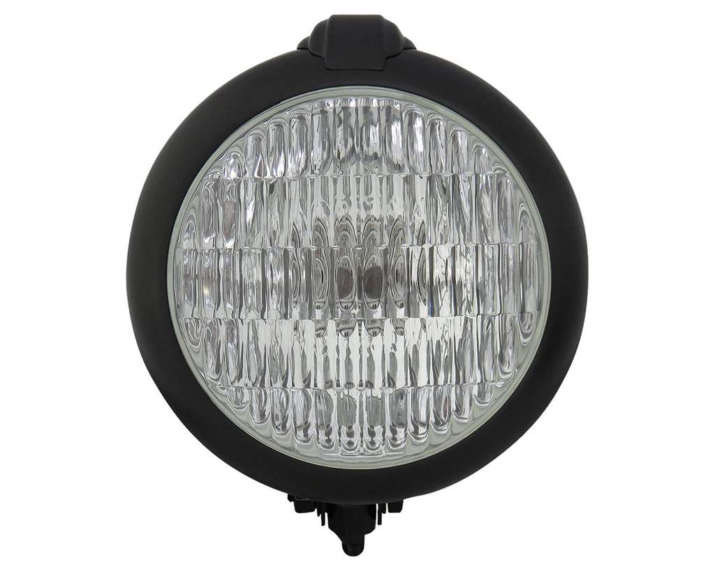 色:マットブラックサイズ:5-3/4インチ適合車種:汎用素材:スチール内容物:ヘッドライト×1注意事項:配線色HI:赤、LO:青、アース:黒商品説明:大昔の車のハンディーライトであったこのライトモーターサイクル仕様にディテールを見直し、復刻されましたトップのカバー(トサカ)がトレードマーク。バックに向かう美しい曲線美は、現行の量産型には成し得ないデザイン性でしょう。 オリジナル品には無かったマウントブラケットを設定。車体への取付が容易です。 H4ハロゲンバルブ採用で、明るく、HI/LOWの切り替えも可能です。