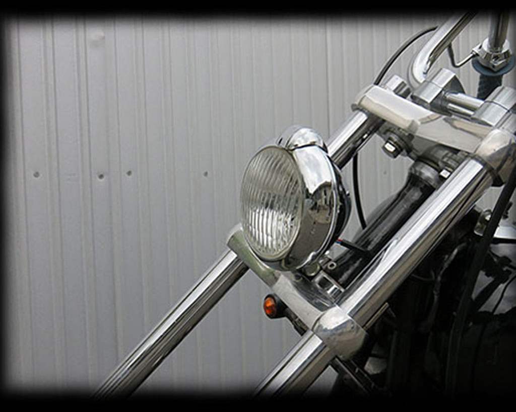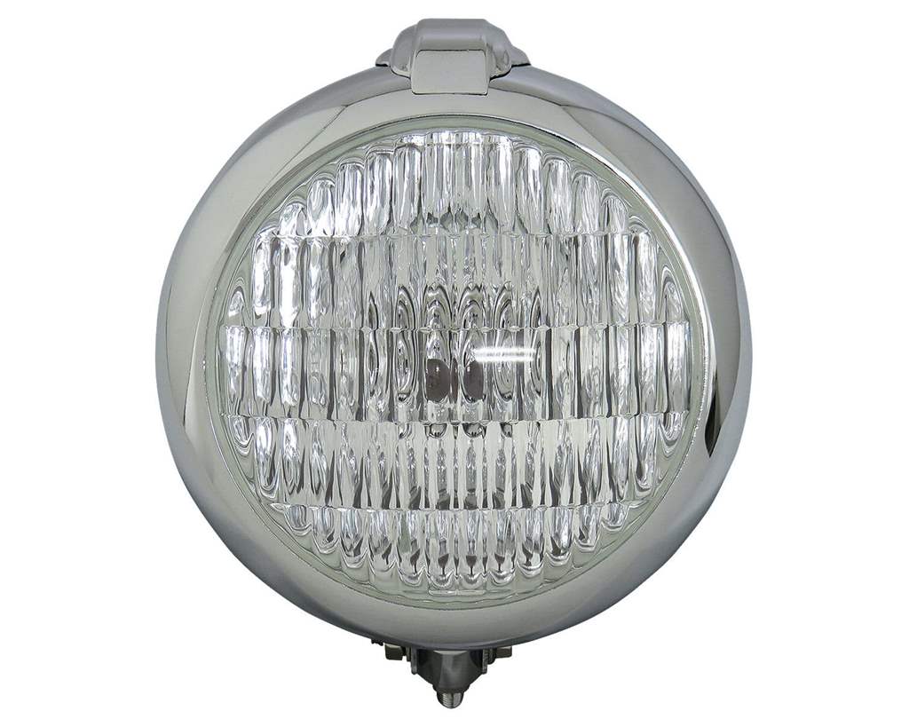 色:クロームサイズ:5-3/4インチ適合車種:汎用素材:スチール内容物:ヘッドライト×1注意事項:配線色HI:赤、LO:青、アース:黒商品説明:大昔の車のハンディーライトであったこのライトモーターサイクル仕様にディテールを見直し、復刻されましたトップのカバー(トサカ)がトレードマーク。バックに向かう美しい曲線美は、現行の量産型には成し得ないデザイン性でしょう。 オリジナル品には無かったマウントブラケットを設定。車体への取付が容易です。 H4ハロゲンバルブ採用で、明るく、HI/LOWの切り替えも可能です。