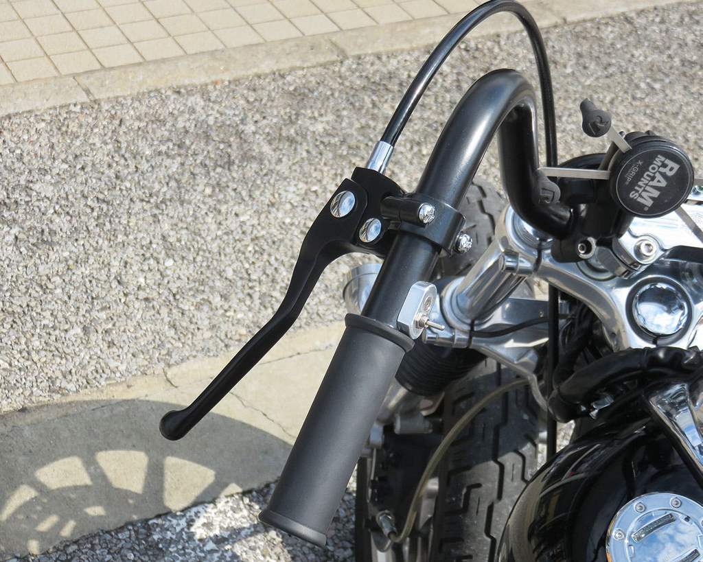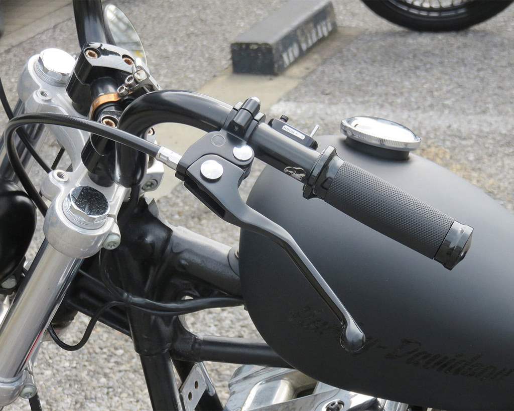 色:ブラックサイズ:クランプ:1インチハンドルクランプ部ボルトサイズ:1/4-20×1in適合車種:1インチハンドル装着の4速および5速以降モデル素材:アルミ内容物:クラッチコントロールAssy×1注意事項:現車の状況によって加工などの技術の要る作業になる場合もあります。ワイヤーケーブル式の車両に限ります。ドラムブレーキ側の操作に流用装着する場合にはピボットピンを、反対側から入れ替えて下さい。商品説明:ハンドルまわりをすっきりとさせるカスタムに最適な、シンプルなデザインを追及したハンドコントロールです。4速及び5速以降のクラッチケーブルに対応するピボットピン付属。オールドスクールチョッパーとの相性も抜群!シックなブラックフィニッシュで、綺麗なハンドル周りを演出します。