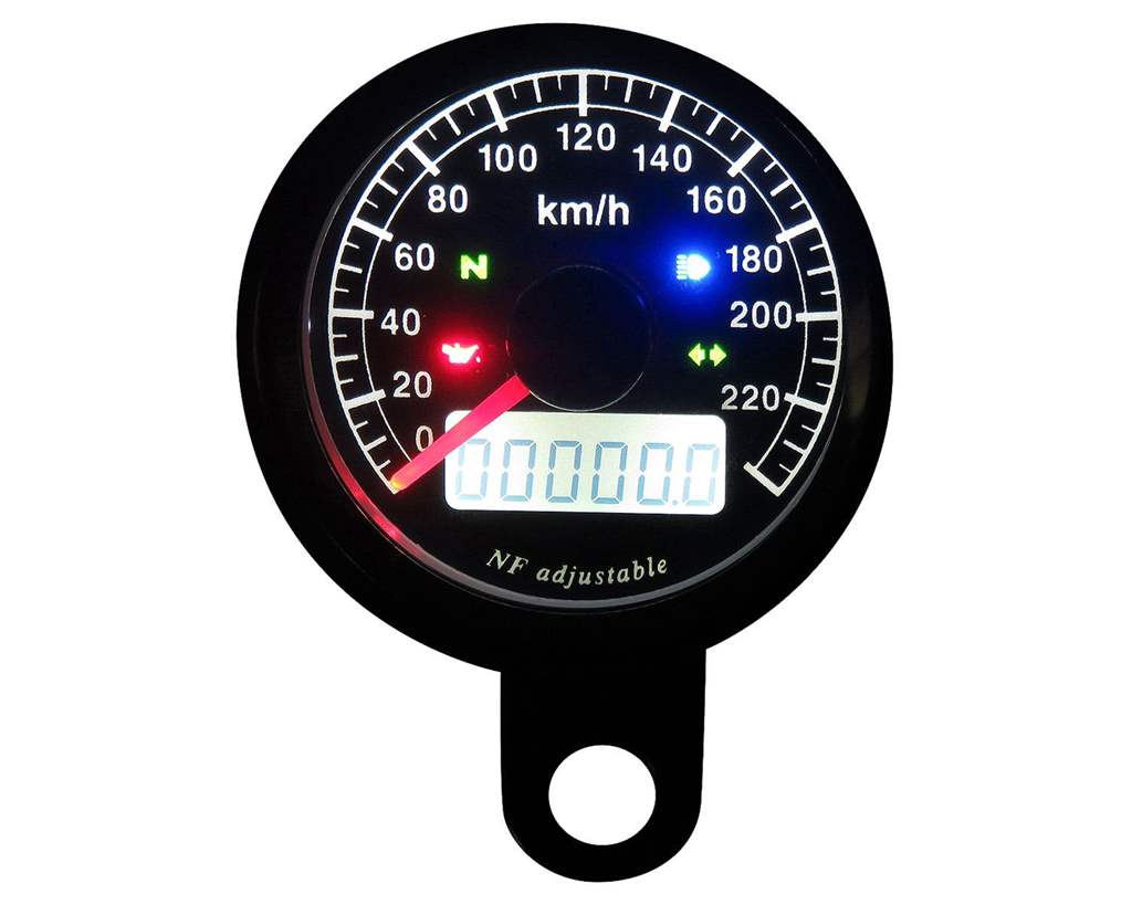 48mm インジケーター付きスピードメーター ステンレス 黒盤 白光 NEO FACTORY(ネオファクトリー)