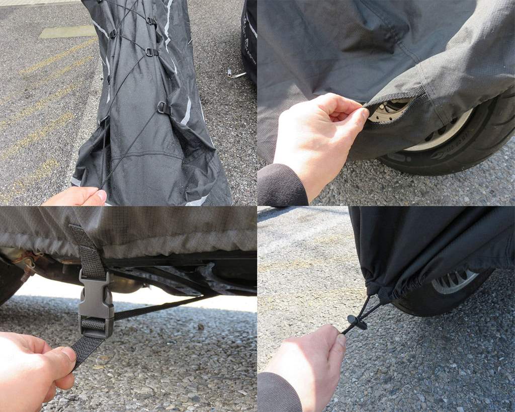 色:カバー、バッグ:ブラックサイズ:L:横(長さ)/約250cm 縦(高さ)/約135cm※サイズは大まかな目安とお考え下さい。適合車種:スポーツスターモデルダイナモデルソフテイルモデルV-RODOEM品番:93100025素材:防水性及び耐熱仕様特殊素材内容物:バイクカバーx1枚注意事項:耐熱素材はマフラー側(右側)のみとなります。商品説明:ゆったりサイズのバイクカバーで、幅広い車種にご利用可能です。ループコードを使用して、車両にマッチさせる事が出来ます。耐熱性素材なので、マフラーに当たっても安心です。目立ちやすい反射板で夜の駐車にもばっちり大型のロックにも対応するロックホールも装備!良いとこ尽くしのバイクカバー。是非1個は持っておきたい一品です。