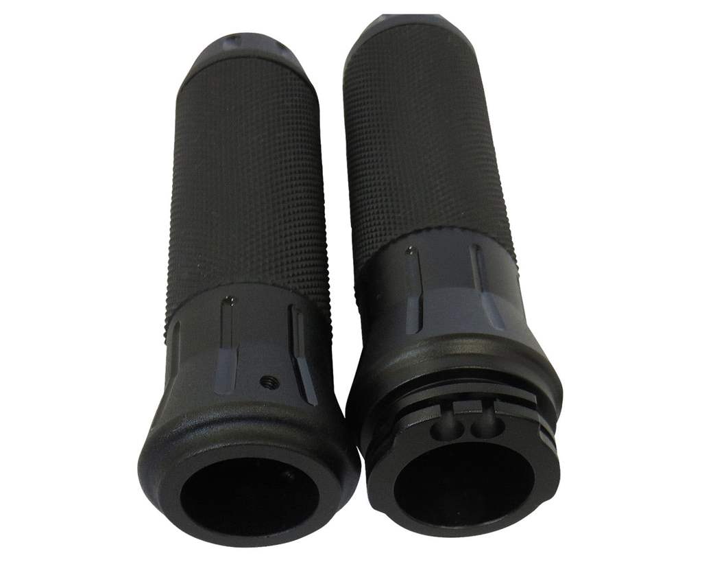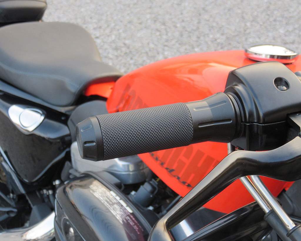 色:ブラック(ステルストーン)サイズ:全長:約128mm(ワイヤー巻取り部除く)直径:約35mm(グリップ握りの中央部分)適合車種:1インチバーを使用する殆どのハーレー(電子制御スロットルを除く)素材:本体:アルミグリップ部分:ラバー内容物:グリップ本体×2本(左右1セット 固定用芋ネジ×3本 専用六角レンチ×1本注意事項:インナースロットルは必要有りません。商品説明:質感がすばらしいカスタムグリップ。どんなカスタムにもぴったり!グリップ部分には専用のローレットタイプラバーが装着され、大変握りやすく滑りも防止されております。右側グリップとワイヤー巻き取り部分が一体のため、インナースロットルは必要ありません。左側グリップはハンドルにかぶせてネジで固定するタイプです。