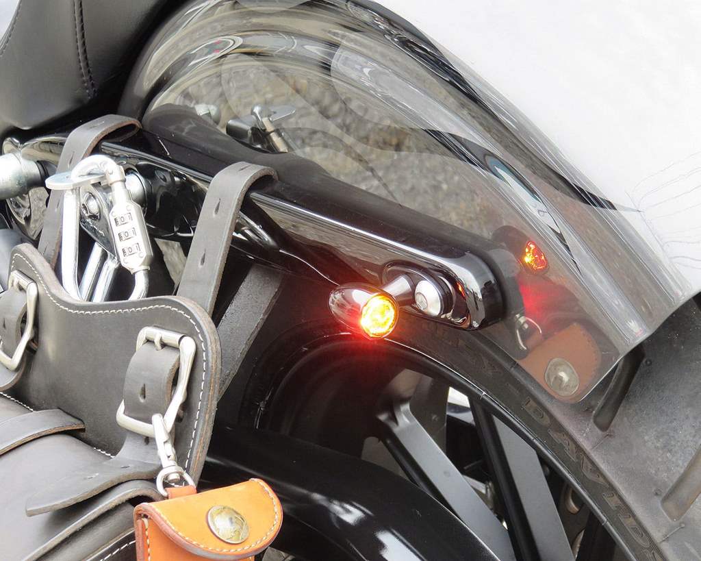 色:本体:ブラックLEDカラー:オレンジ/レッドサイズ:レンズ直径:約17mm本体直径:約22.5mm 奥行き:約37mm取り付けボルトサイズ:M8×1.25ボルト部分長さ:約15mm素材:アルミ内容物:ウインカー×2個注意事項:場合によっては抵抗値を変える必要があります。現在ご使用のウインカーのワット数をご確認下さい。BCMが採用されているモデルはウインカーやインジケーターに異常点滅が発生した際、ワット数の変更を認識させる為にハザードを約30秒点滅動作させる事で改善します。消費ワット数の低下によりエラーコードが発生する場合がありますが、使用上問題はありません。商品説明:かなり小ぶりなウインカーながら国際基準のEマーク・50R取得です。更にブレーキライトも内蔵していますので、コンビネーションウインカーになります。小さいですが、LEDで視認性はばっちり!目立たさせたくないけど、機能も欲しい!そんなカスタム心を満足させる商品です。配線説明テールランプ:白ブレーキランプ:赤ウインカー:黄アース:黒常時灯→ストップライト→ウインカー→ウインカー+ストップライトの順に点灯
