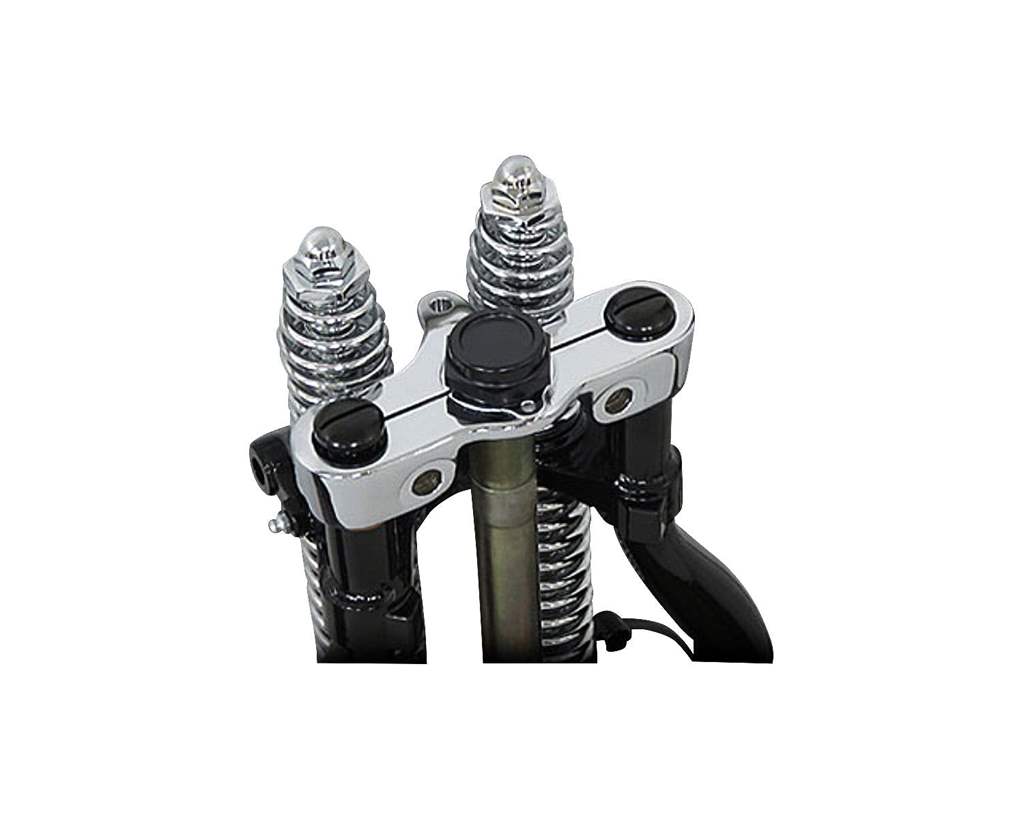 色:素地サイズ:クランプ部ボルトサイズ:7/16-20適合車種:36〜46年までのインライン74スプリンガー素材:スチール内容物:トップティー×1個注意事項:インラインの74スプリンガーのみ適合です。※中央穴部分がきつい場合がある為、場合によっては小加工が必要になります。表面処理なしの素地の為、サビが発生致します。※2枚目の画像は、クロームを使用したライザー取り付けイメージとなります。商品はトップティーのみになります。商品説明:純正と同じデザインのトップティーです。ライザー用のバーがないのでスマートなビジュアルになります。この度溶接加工や塗装のベースに最適な素地のタイプをご用意致しました。カスタムベースやライザーを直接マウントする際にご使用ください。