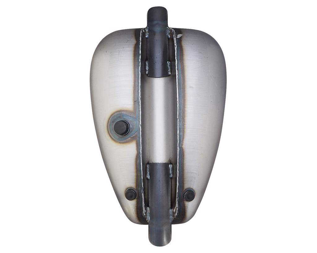 色:素地(未塗装)サイズ:長さ約410mm(ブラケット含まず)最大幅約300mm 最小幅約120mm 高さ約200mmトンネル(下のえぐれてる所)幅約65〜70mm 深さ約70mmガスコックサイズは右側3/8NPT、両側に1/4NPT適合車種:汎用品素材:スチール内容物:ガスタンク本体のみ注意事項:※製造工程上固体によってリブの処理が若干荒いものがございます。その際はパテでお好みの形状に均す等の加工が必要になります。予めご了承下さい。ガスキャップはスクリュータイプのみ適合です。ガスキャップは右用が対応します。内容量表記(ガロン)は目安となっております。車体にマウント後、実際に使える容量は表記より低くなる場合がございます。※当商品を購入及び施工前に『ガソリンタンク取り扱い注意事項』を必ず御確認下さい。注意事項を確認せず塗装や加工等を行った後に発覚した製品の不具合は一切お受け付けを致しませんので予めご了承下さい。商品説明:リブドチョッパーガスタンクです。ガスキャップはスクリュータイプが使用可能で、バングの形状が純正と同等の規格なので、純正規格のスクリュータイプのキャップであれば基本的には使用可能です。その名の通り、チョッパーの定番アイテムですね。容量は約3.0Galと比較的容量の大きめなタンクとなります。