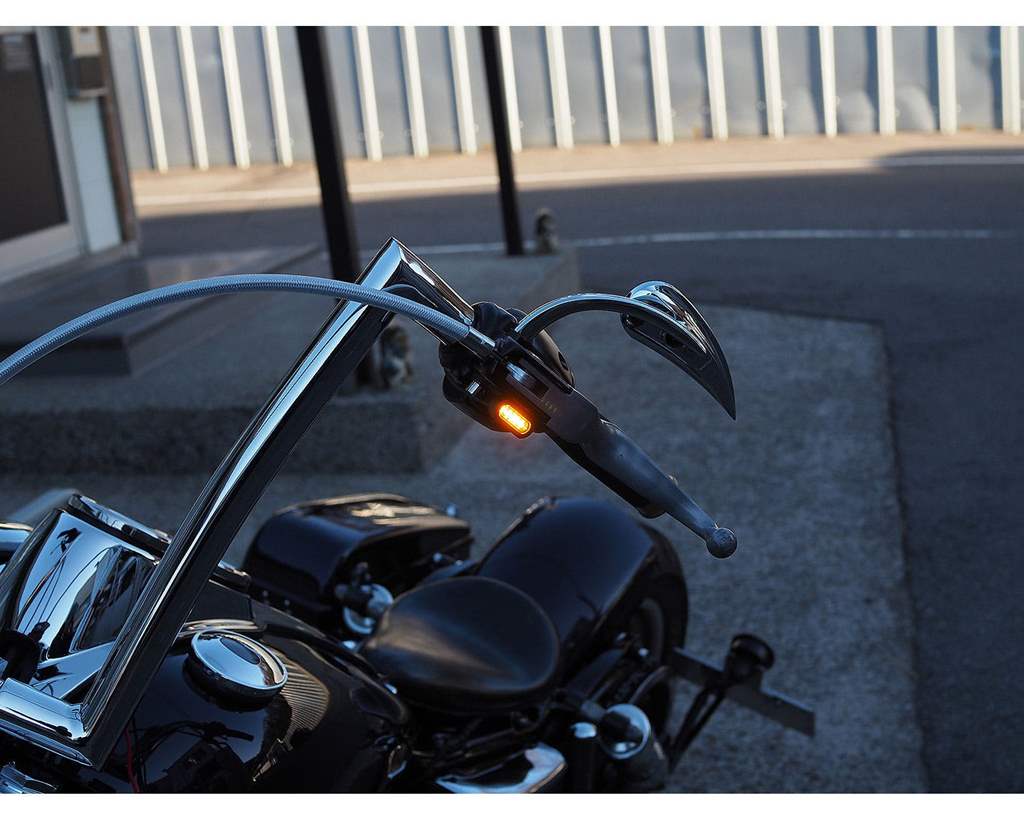 色:ボディー:ブラック レンズ:オレンジLEDカラー:オレンジサイズ:レンズ部 横:約21mm 縦:約9mm12V1w適合車種:1999〜2017年式ダイナモデル2000〜2014年式ソフテイルモデル1996〜2003年式スポーツスターモデル素材:アルミ内容物:ウインカー×2個注意事項:適合車種の純正ハンドコントロールに準じた設計となっております。社外コントロール類への装着及び流用の可否は分かりかねます。場合によっては抵抗値を変える必要があります。現在ご使用のウインカーのワット数をご確認下さい。BCMが採用されているモデルはウインカーやインジケーターに異常点滅が発生した際、ワット数の変更を認識させる為にハザードを約30秒点滅動作させる事で改善します。消費ワット数の低下によりエラーコードが発生する場合がありますが、使用上問題はありません。商品説明:ハンドコントロールの下に取り付ける小型ウインカーです。レンズには国際基準のEマーク・50Rを取得!とても小さいですがLEDで視認性はバッチリ!目立たさせたくないけど機能も欲しい!そんなカスタム心を満足させるアイテムです。配線説明ウインカー(+):黄アース(-):黒