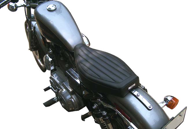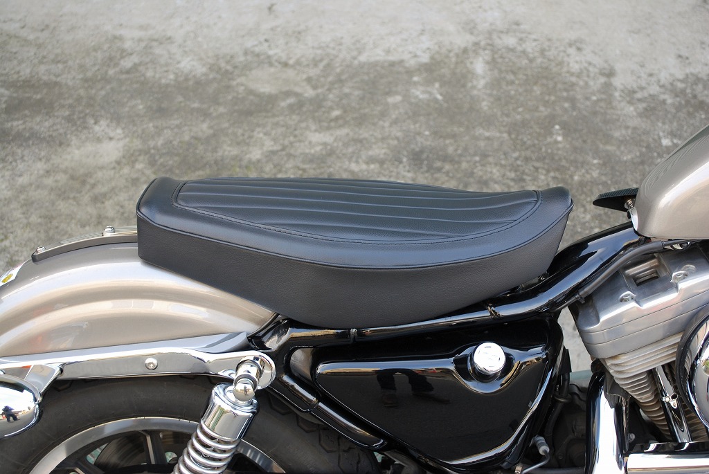 ※ご注文に際しては装着車両モデル・年式の確認が必要です。注文備考欄に入力をお願いします。適合車種:〜03年XLスポーツスター。●特徴について:今までにない、ちょっとレトロな雰囲気が味わえます。もちろん乗り心地も良好。全長は54cmダブルより少し短めですが、タンデムすることもできます。取り外し可能なタンデムベルトが標準装備となります。シート中央にはプレーンタックをはめ込んでいます。縫い合わせラインはステッチ仕上げです。インジェクションスポンジを使用していますから、乗り心地は抜群、型くずれせず、長くご愛用いただけます。●ご注意:取り付けには別売りの【K-056】取付ステーが必要になります。