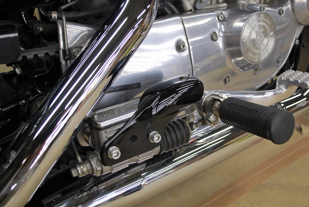 ※ご注文に際しては装着車両モデル・年式の確認が必要です。注文備考欄に入力をお願いします。適合車種:〜03年XLスポーツスター。●特徴について:車体右側のマスターシリンダーと共締めするヒールアシストカバーです。このカバーを装着すると、左側プライマリーカバーに左踵が当たるのと同じように右側の踵が当たり車体中央に真っ直ぐ乗車する事が出来ます。踵のグリップが安定し、ステップ荷重での車体操作がし易くなります。加工なしで、ボルトオン装着できます。■FRP製 黒ゲルコート仕上げ。