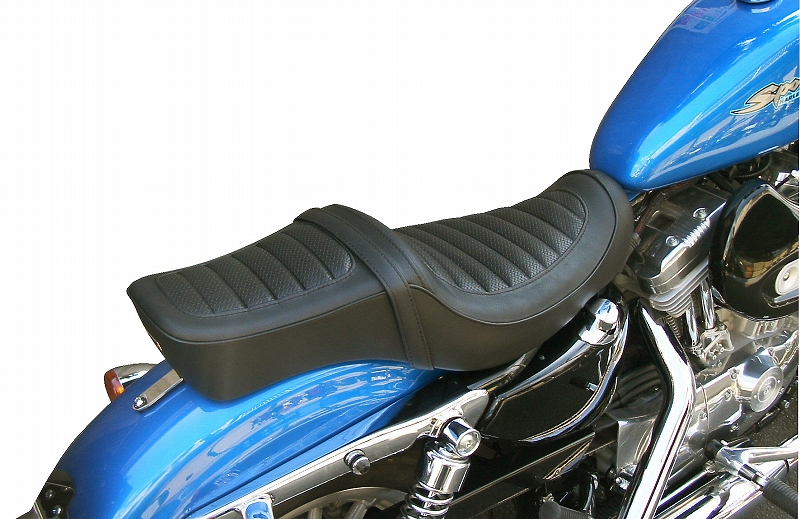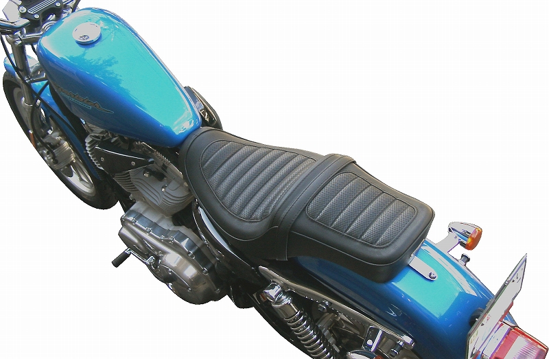適合車種:18年以降XL1200NS18年以降XL1200XS16年以降XL1200CX09年以降XL883N08~12年XL1200N04~07年XL1200R12~16年XL1200V 7210年以降XL1200X 4807年XL5005~10年XL883L06~15年XL883R04~09年XL883※ご注文に際しては装着車両モデル・年式の確認が必要です。注文備考欄に入力をお願いします。【ご注意】ワイド&ストレッチタイプタンクの車両には先端の形状に合わせた物をご用意しております。2007年~2009年の車両には装着できません。●特徴について:キング&クイーン(S-5617)よりパッセンジャー側の座面幅が広く、厚みを少しプラスしています。タンデムでのロングツーリングに適したシートになっています。高品質のインジェクションスポンジを使用していますから、適度はコシと柔らかさを保っています。型くずれせず、長くご愛用いただけます。レザーはプレーン黒レザー、タックロールはメッシュレザーを使用。後部からの縫い合わせラインにはパイピングを挟んでいます。パイピングが真っすぐタンクまで伸びるAタイプです。タンデムベルトはボルト止め標準装備です。●注意:*XL883N・XL1200Nはリアフェンダーにテールランプが付いているモデルと、テールランプとウインカーが一体になっているモデルがあります。テールランプとウインカーが一体になっているモデルには、フェンダーに取り付けステーの傷が付かないように、専用のウレタンカラー(別売りP-54)はウレタンカラー(別売りP-54)を別途お買い求めください。*XL1200X・XL1200Vの車両の方も専用ウレタンカラー(別売りP-54)のご使用をお勧めします。