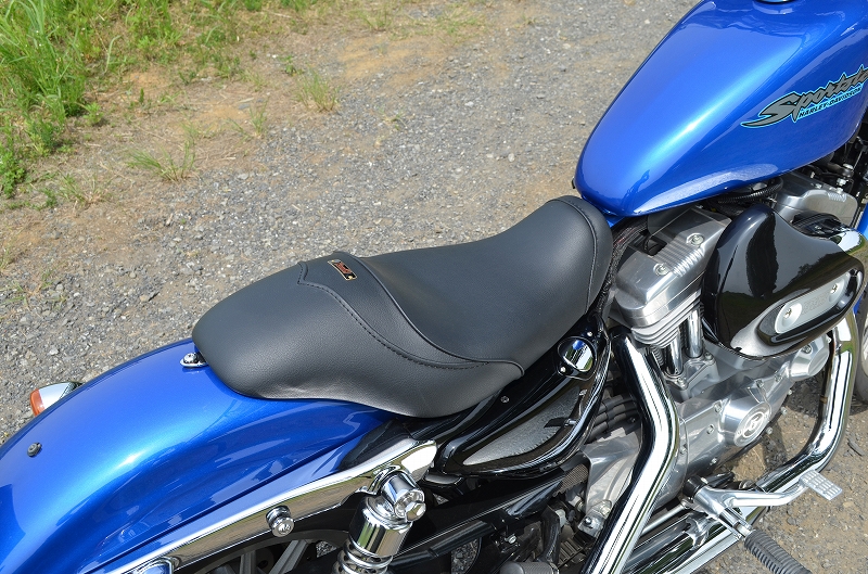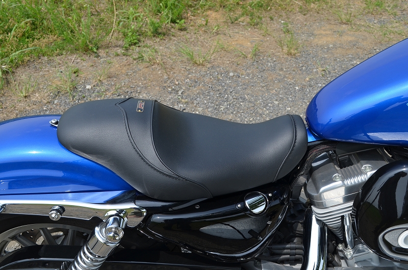 適合車種:18年以降XL1200NS18年以降XL1200XS16年以降XL1200CX09年以降XL883N08〜12年XL1200N04〜07年XL1200R12〜16年XL1200V 7210年以降XL1200X 4807年XL5005〜10年XL883L06〜15年XL883R04~09年XL883※ご注文に際しては装着車両モデル・年式の確認が必要です。注文備考欄に入力をお願いします。ワイド&ストレッチタイプタンクの車両には先端の形状に合わせた物をご用意しております。●特徴について:シート高は【S-5619】ソロシートよりも1cm低い【S-5625】スーパーローシートと同じですが、ストッパーまでの位置が少し後ろになっています。足を下ろした時に内股にかかる部分を、乗り心地を損なわないギリギリまで細くしています。着座位置は幅と厚みを充分に持たせていますので、足付きも乗り心地も良いシートになっています。純正標準シートで「お尻が痛い、ハンドル、ステップが遠い。路面の衝撃が辛い」という方に特にお勧めのシートです。**小柄な方やフォーティーエイトなどフォワードコントロール車でステップが遠く感じ、より前目にストッパーがあった方が良いという方には【S-5625】スーパーローシートの方をお勧めします。高品質のインジェクションスポンジを使用していますから、適度はコシと柔らかさを保っています。型くずれせず、長くご愛用いただけます。プレーンの黒レザーを使用し、後部からの縫い合わせラインにはパイピングを挟み込み、前切替ライン、後部デザインラインはステッチ仕上げです。後部ラインの中央先端が尖っています。