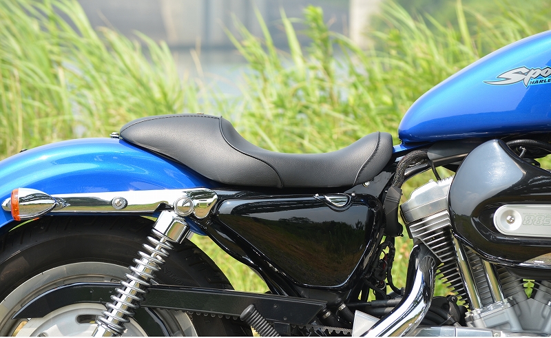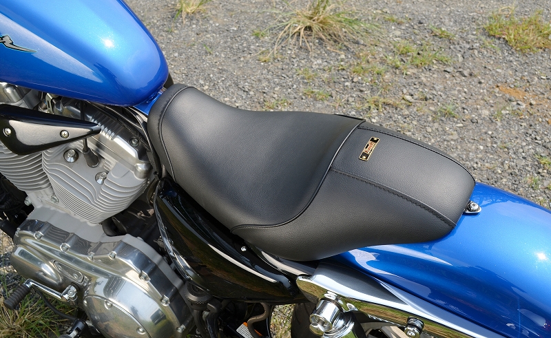 適合車種:18年以降XL1200NS18年以降XL1200XS16年以降XL1200CX09年以降XL883N08〜12年XL1200N04〜07年XL1200R12〜16年XL1200V 7210年以降XL1200X 4807年XL5005〜10年XL883L06〜15年XL883R04~09年XL883※ご注文に際しては装着車両モデル・年式の確認が必要です。注文備考欄に入力をお願いします。ワイド&ストレッチタイプタンクの車両には先端の形状に合わせた物をご用意しております。●特徴について:シート高は【S-5619】ソロシートよりも1cm低い【S-5625】スーパーローシートと同じですが、ストッパーまでの位置が少し後ろになっています。足を下ろした時に内股にかかる部分を、乗り心地を損なわないギリギリまで細くしています。着座位置は幅と厚みを充分に持たせていますので、足付きも乗り心地も良いシートになっています。純正標準シートで「お尻が痛い、ハンドル、ステップが遠い。路面の衝撃が辛い」という方に特にお勧めのシートです。**小柄な方やフォーティーエイトなどフォワードコントロール車でステップが遠く感じ、より前目にストッパーがあった方が良いという方には【S-5625】スーパーローシートの方をお勧めします。高品質のインジェクションスポンジを使用していますから、適度はコシと柔らかさを保っています。型くずれせず、長くご愛用いただけます。プレーンの黒レザーを使用し、後部からの縫い合わせラインにはパイピングを挟み込み、前切替ライン、後部デザインラインはステッチ仕上げです。