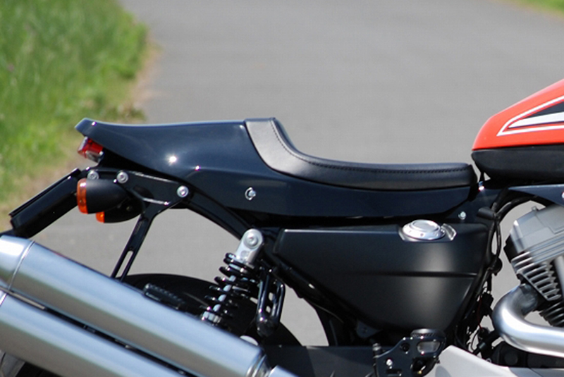 ※ご注文に際しては装着車両モデル・年式の確認が必要です。注文備考欄に入力をお願いします。適合車種:XR1200シートのスポンジ部分は型の中で発砲させてインジェクションスポンジを使用していますから、経年変化によるスポンジのへたりも少なく長くご愛用いただけます。●特徴:フレーム等の加工は一切無く、特殊な取付ボルトを使用していますので、簡単な工具でボルトオン装着が可能です。シート部は、プレーンの黒レザーを使用し、縫い合わせラインはステッチ仕上げです。取り付け方法は コチラ をご参照下さい。●ご注意:シートカウルは黒ゲルコート仕上げです参考画像同様に純正カラーにペイントも承ります。※純正のリアフェンダーは併用不可。弊社製【HP-031】リアフェンダーをお買い求め下さい。シートカウル下を小物入れとしても活用できます。