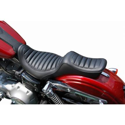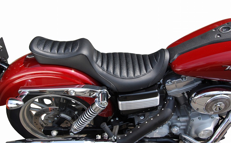 適合車種:16〜17年FXDLS16年FXDBC15年FXDBB08〜17年FXDBA08〜17年FXDF10年FXDF2CVO12〜16年FLD06年FXDI07〜17年FXDB06〜14年FXDC06〜17年FXDWG06〜17年FXDL06〜10年FXD※ご注文に際しては装着車両モデル・年式の確認が必要です。注文備考欄に入力をお願いします。足を出す部分は細く、着座部分の幅は充分確保していますので、足つきが良く乗り心地が良いシートに仕上がっています。インジェクションスポンジを使用していますから、適度はコシと柔らかさを保っています。型くずれせず、長くご愛用いただけます。タンデムベルトは標準装備ですが、取り外し可能です。●特徴:レザーは全てプレーンブラックレザーを使用。座面の中央部分と前側の切り替え部分はステッチ、後部からのデザインラインはパイピングで仕上げています。●ご注意:FXDWG等ボブテイルフェンダー装着後は、取り付けステーが異なります。FXDF-CVOの方はご相談ください。FXDB・FXDBA・FXDBB・FXDBCストリートボブに取り付ける場合はフェンダーに取り付けステーの傷が付かないように専用のウレタンカラー(別売り)【P-54】を別途お買い求めください。