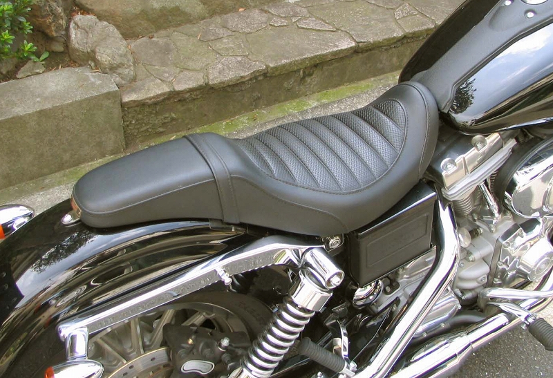 適合車種:05年FXDC04〜05年FXDWG04〜05年FXDW04〜05年FXDL04〜05年FXD※ご注文に際しては装着車両モデル・年式の確認が必要です。注文備考欄に入力をお願いします。*ボブティルフェンダー車両は専用ステーを使用します。必ずご指定ください。*高品質のインジェクションスポンジを使用していますから、適度はコシと柔らかさを保っています。型くずれせず、長くご愛用いただけます。●特徴:黒プレーンレザーを使用し、座面にメッシュレザーのタックロールをはめ込んでいます。縫い合わせラインはステッチ仕上げです。タンデムベルトは標準装備、取り外し可能です。