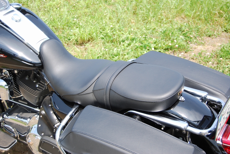 ※ご注文に際しては装着車両モデル・年式の確認が必要です。注文備考欄に入力をお願いします。2008年以降のツーリングファミリーのソロシート、スーパーローシートに対応するペアライドシートです。取り付け、取り外しがボルト一本で簡単に行えますので、シチュエーションに応じてソロツーリング、タンデムツーリングを楽しむことができます。高品質のインジェクションスポンジを使用していますから、適度はコシと柔らかさを保っています。型くずれせず、長くご愛用いただけます。●特徴:プレーンの黒レザーを使用し、縫い合わせラインはステッチ仕上げです。タンデムベルトは標準装備ですが、取り外し可能です。●ご注意:*ソロシートのフェンダー側取り付けナットが標準のナットの場合、ペアライドシート取り付けには別売りの〈P-58〉シートナットマウンティングが必要です。*車両により純正のボルト他が必要になる場合があります。*2008年のFLHTC/FLHTCUへの取り付けの場合は、ツアーパックと取付ステーを外してください。干渉があり、そのままでは取付ができません。2009年以降は併用可能です。*純正のオプションパーツ≪クローム4チャンネルラゲッジラック(53341-97A)≫との併用はできません。*CVOに装着する場合、シートベースと干渉する為、リアフェンダー上のモール3本を取り外していただく必要があります。モールは両面テープで固定されていますので、温めてからお取り外し下さい。