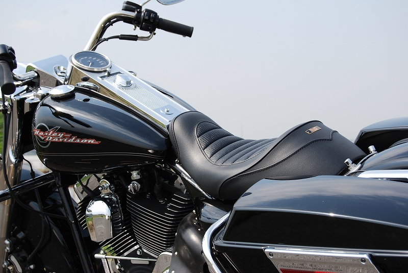 適合車種:97年〜07年までのFLTRFLHRFLHRCFLHXFLHTCFLHTFLHTCU※ご注文に際しては装着車両モデル・年式の確認が必要です。注文備考欄に入力をお願いします。●ご注意:*車両により純正のボルト他が必要になる場合があります。*FLHRSロードキングカスタム車両の場合はタンクに合わせ、前側を変えた形状にしています。【S-5122T】*FLTR・FLHT・FLHTC・FLHRCUはタンクの上面のメーターパネルの長さが短いため、シートの間に隙間ができます。 K&H製の【HP-026】トリムピースをご使用いただければ隙間をカバーすることができます。 高品質のインジェクションスポンジを使用していますから、適度はコシと柔らかさを保っています。型くずれせず、長くご愛用いただけます。シート前側の形状を細くし、足付き性を向上させており、ノーマルシートより前目に乗車する事ができます。ノーマルシートで「ハンドルが遠い、ブレーキ・シフトペダルが遠い、足付きに不安がある」という方にはお勧めです。ノーマルシートで「ハンドルが遠い、ブレーキペダルが遠い、足付きに不安がある」という方にお勧めです。かなり足つきが良くなる為、マフラーの熱から足を守るマフラープロテクターとの併用をお勧めします。●特徴:プレーンの黒レザーを使用し、座面にはメッシュレザーのタックロールをはめ込んでいます。後部からの縫い合わせラインにはパイピングを挟み込み、前切替ライン、後部デザインラインはステッチ仕上げです。ペアライドシートは【S-5126】をお選びください。*ペアライドシートはツアーパック取付ステーに干渉する為、FLHTC FLHTCUには装着できません。(ツアーパックと取付ステーを外している車両には装着可)一人でのライディングの時はソロシートで、二人乗りの時はペアライドシートを付けてタンデムツーリングを楽しくことができます。