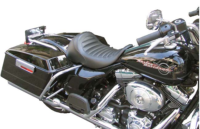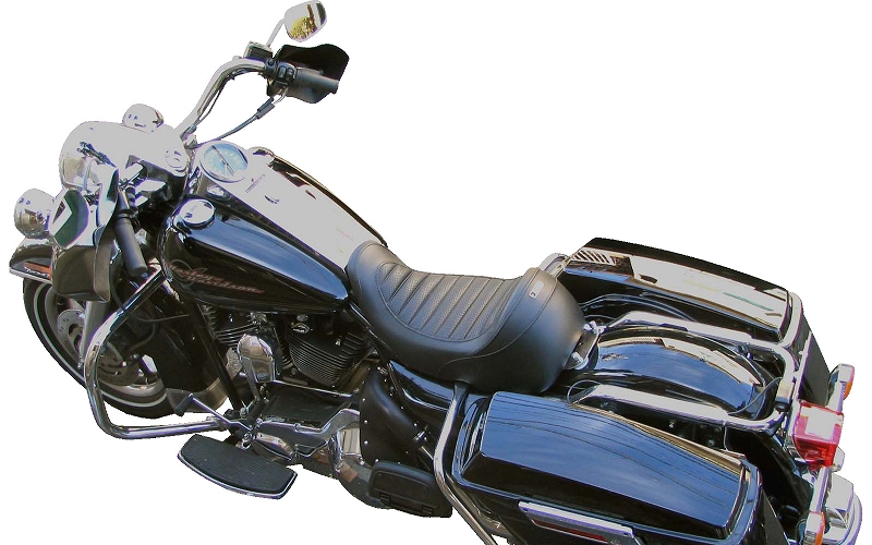 適合車種:97年〜07年までのFLTRFLHRFLHRCFLHXFLHTCFLHTFLHTCU※ご注文に際しては装着車両モデル・年式の確認が必要です。注文備考欄に入力をお願いします。●特徴:プレーンの黒レザーを使用し、座面にはメッシュレザーのタックロールをはめ込んでいます。後部からの縫い合わせラインにはパイピングを挟み込み、前切替ライン、後部デザインラインはステッチ仕上げです。●ご注意:*車両により純正のボルト他が必要になる場合があります。*FLHRSロードキングカスタム車両の場合はタンクに合わせ、前側を変えた形状にしています。【S-5114T】*FLTR・FLHT・FLHTC・FLHRCUはタンクの上面のメーターパネルの長さが短いため、シートの間に隙間ができます。K&H製のトリムピースをご使用いただければ隙間をカバーすることができます。高品質のインジェクションスポンジを使用していますから、適度はコシと柔らかさを保っています。型くずれせず、長くご愛用いただけます。シート前側の形状を細くし、足付き性を向上させており、ノーマルシートより前目に乗車する事ができます。ノーマルシートで「ハンドルが遠い、ブレーキ・シフトペダルが遠い、足付きに不安がある」という方にはお勧めです。ソロシート(S-5121)に比べ、後部に丸みがあるタイプです。ペアライドシートは【S-5102】が対応しています。*ペアライドシートはツアーパック取付ステーに干渉する為、FLHTC FLHTCUには装着できません。(ツアーパックと取付ステーを外している車両には装着可)一人でのライディングの時はソロシートで、二人乗りの時はペアライドシートを付けてタンデムツーリングを楽しくことができます。