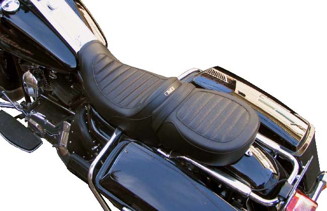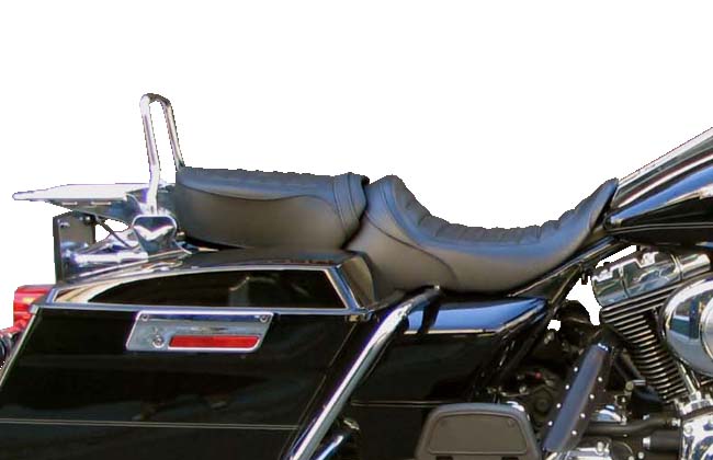 適合車種:97年〜07年までのFLTRFLHRFLHRCFLHXFLHTCFLHTFLHTCU※ご注文に際しては装着車両モデル・年式の確認が必要です。注文備考欄に入力をお願いします。【S-5113】専用ペアライドシートです。シート幅も広く、座り心地の良いシートです。●ご注意:*車両により純正のボルト他が必要になる場合があります。*ツアーパック取付ステーに干渉する為、FLHTC FLHTCUには装着できません。(ツアーパックと取付ステーを外している車両には装着可)*純正のオプションパーツ≪クローム4チャンネルラゲッジラック(53341-97A)≫との併用はできません。*ショートCCバーを装着した車両はシート後部が干渉しないように対応した商品がございます。≪ショートCCバー装着車両≫とご指定下さい。高品質のインジェクションスポンジを使用していますから、適度はコシと柔らかさを保っています。型くずれせず、長くご愛用いただけます。●特徴:プレーンの黒レザーを使用し、座面にはメッシュレザーのタックロールをはめ込んでいます。後部からの縫い合わせラインはステッチ仕上げです。タンデムベルトは標準装備。ボルト止めですから脱着可能です。