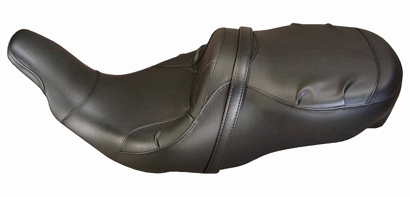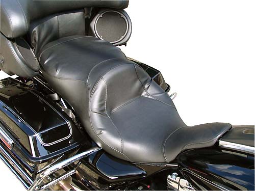 ※ご注文に際しては装着車両モデル・年式の確認が必要です。注文備考欄に入力をお願いします。1997年から2007年までのFLHTCU・FLHTC・FLHT・ FLTR専用ダブルシートです。シート前側の形状を細くし、足つき性を向上させており、ノーマルシートよりも前目に乗車することができます。ノーマルシートで「ハンドルが遠い、ブレーキ・シフトペダルが遠い、足つきに不安がある」という方には特にお勧めです。パッセンジャー側の幅もスポンジ厚みも充分確保されていますので、タンデムツーリングには最適です。●ご注意:電装品を追加している車両はシート下の配線を整理する必要があります。高品質のインジェクションスポンジを使用していますから、適度はコシと柔らかさを保っています。型くずれせず、長くご愛用いただけます。かなり足つきが良くなる為、マフラーの熱から足を守るマフラープロテクターとの併用をお勧めします。●特徴:プレーンの黒レザーを使用し、縫い合わせラインは全てステッチで仕上げています。タンデムベルトは標準装備ですが、外すことができます。パッセンジャーグラブレールとの併用も可能です。