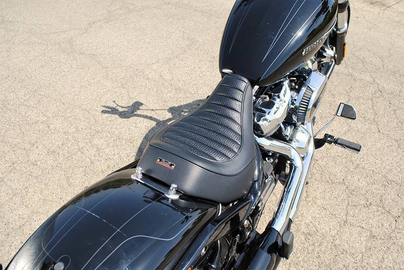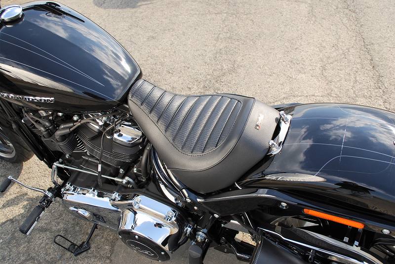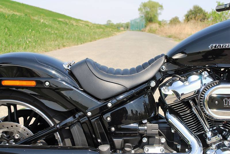 適合車種:18〜19年FXBR18年以降FXBRS※ご注文に際しては装着車両モデル・年式の確認が必要です。注文備考欄に入力をお願いします。・2018年からのBREAKOUT (FXBR/FXBRS) 専用フロントシート。着座位置が前目になるので、ハンドルが遠い、フォワードコントロールでステップが遠い、という方にお勧め。【S-6104T】ソロシート タック より、ストッパーを前目に設計してあります。・インジェクションスポンジを使用。乗り心地良く、型崩れせず、長くご愛用頂けます。・取り付けステーまでセットでお届け。純正シート同様フェンダー2点固定でボルトオン装着が可能。*ソロシート系のシートを装着の際取付けナット部分が露出してしまいますので、装飾のある【P-58】シートナットマウンティング(2個1set 4200円税抜)で固定することをお勧めします。またその際【P-50】ウレタンワッシャーを挟み込むことで、後部からの見栄えを良くします。上記2点はこの商品ページでシートと同時購入も可能です。●特徴:プレーンレザーを使用し、座面中央にはメッシュレザーのタックロールをはめ込んでいます。後部からの縫い合わせラインは黒パイピングを挟み込み、前切替、タックロール周囲はステッチ仕上げです。弊社の製作するシートの特徴はこちらから詳しくご覧いただけます。また、ブログ血と汗と涙のシート制作記で、各製品の制作過程や新商品の開発状況等ご確認頂けます。●ご注意:純正リアシートとの併用は出来ません。弊社の専用リアシート【S-6109】をご検討下さい。