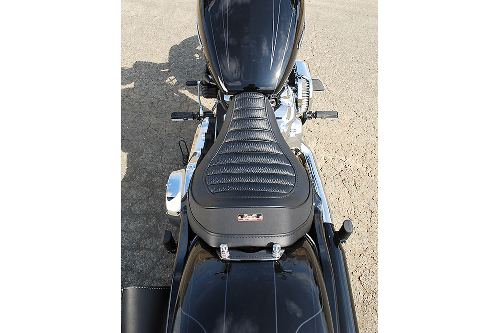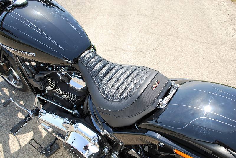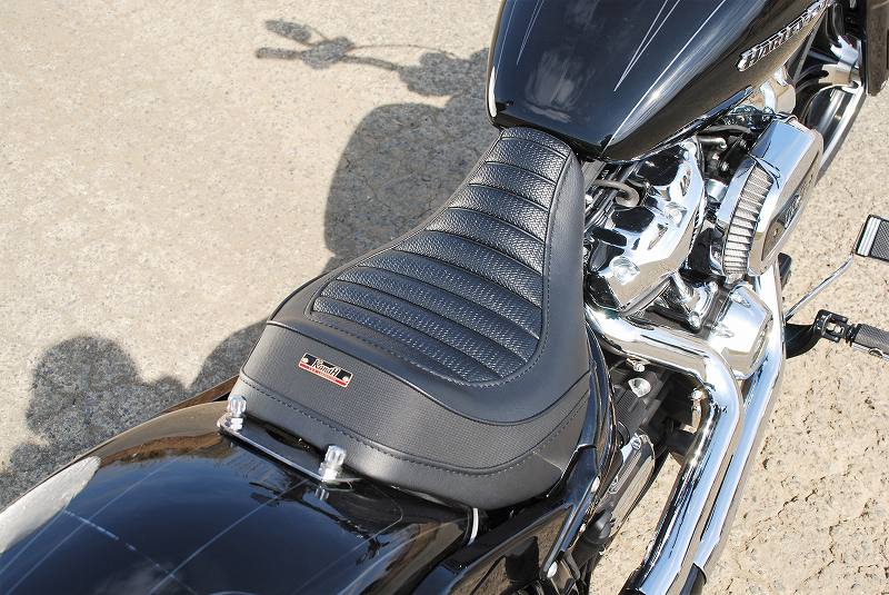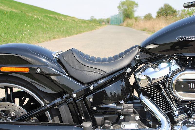 適合車種:18〜19年FXBR18年以降FXBRS※ご注文に際しては装着車両モデル・年式の確認が必要です。注文備考欄に入力をお願いします。・2018年からのBREAKOUT (FXBR/FXBRS) 専用フロントシート。着座位置が前目になるので、ハンドルが遠い、フォワードコントロールでステップが遠い、という方にお勧め。【S-6104T】ソロシート タック より、ストッパーを前目に設計してあります。・インジェクションスポンジを使用。乗り心地良く、型崩れせず、長くご愛用頂けます。・取り付けステーまでセットでお届け。純正シート同様フェンダー2点固定でボルトオン装着が可能。*ソロシート系のシートを装着の際取付けナット部分が露出してしまいますので、装飾のある【P-58】シートナットマウンティング(2個1set 4200円税抜)で固定することをお勧めします。またその際【P-50】ウレタンワッシャーを挟み込むことで、後部からの見栄えを良くします。上記2点はこの商品ページでシートと同時購入も可能です。●特徴:後部切替はすべり止めブラック、座面中央にはメッシュレザーのタックロールをはめ込んでいます。その他はプレーンブラックです。後部からの縫い合わせラインは黒のパイピング仕上げ、前切替、タックロール周囲および後部デザインラインはステッチ仕上げです。弊社の製作するシートの特徴はこちらから詳しくご覧いただけます。また、ブログ血と汗と涙のシート制作記で、各製品の制作過程や新商品の開発状況等ご確認頂けます。●ご注意:純正リアシートとの併用は出来ません。弊社の専用リアシート【S-6109】をご検討下さい。