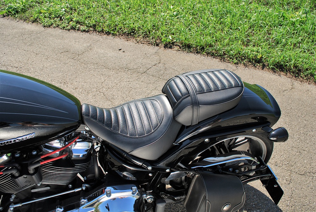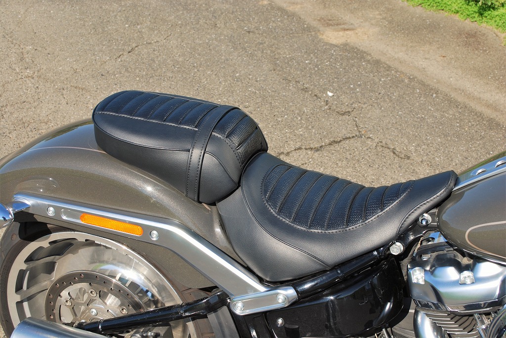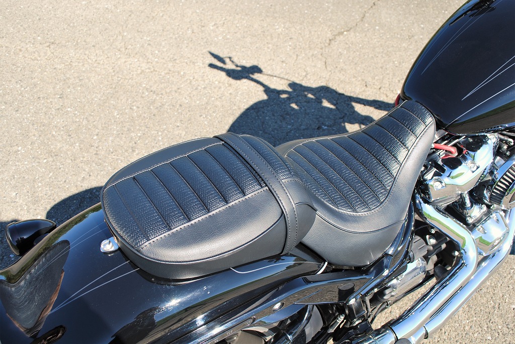 適合車種:18〜19年FLFB18年以降FLFBS18〜19年FXBR18年以降FXBRS※ご注文に際しては装着車両モデル・年式の確認が必要です。注文備考欄に入力をお願いします。弊社製 ’18?FATBOY・BREAKOUT ソロシート・リーチシート専用ぺアライドシートです。フェンダーの端一杯まで座面幅を取ってあり、スポンジの厚みもしっかりあります。パッセンジャーの乗り心地良く、長距離のタンデムツーリングには必須のシートとなっております。●特徴:プレーンレザーを使用し、座面中央にはメッシュレザーのタックロールをはめ込んでいます。後部からの縫い合わせラインは黒パイピングを挟み込んでいます。タンデムベルト標準装備。