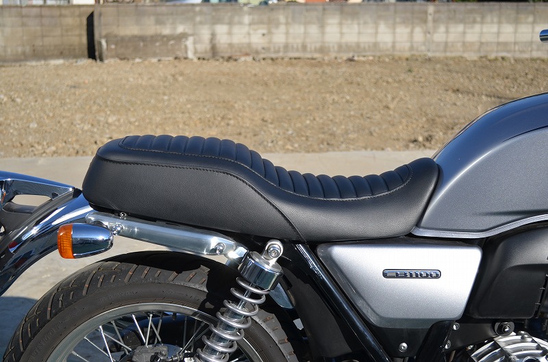 ※ご注文に際しては装着車両モデル・年式の確認が必要です。注文備考欄に入力をお願いします。適合車種:2019年〜 CB1100 17Lタンク・純正シートに対し座面の傾斜や幅、高さ、形状を見直したCB1100 17Lタンク専用シート。・ライダー側・パッセンジャー側ともに充分なスポンジの厚みと幅を持たせ、座面の傾斜も見直し。タンデムツーリングをする方にもお勧め、ソロツーリングの際は荷物の積載もし易くなります。・乗り心地が良くなるよう着座部分の幅はある程度確保し、足を下ろす部分は幅を細くして、足を下ろしやすい設計にしています。・型の中で発砲させたインジェクションスポンジを使用。クッション性が良く経年劣化が少ないため、長くご愛用頂けます。【ご注意】2018年までのCB1100については、『CB1100 14Lタンク』のカテゴリーからお選び下さい。シート裏側に書類入れはありません。【特徴】シート高:765mm・座面中央部分にプレーンレザーのタックロールをはめ込み。縫い合わせのラインはステッチ仕上げ、ラインが途中で下に落ちるBタイプ。・タンデムベルトはボルト止めで標準装備。・取付は純正シート同様キーロック方式。・純正キャリア・トップボックスとの併用も可。