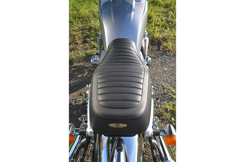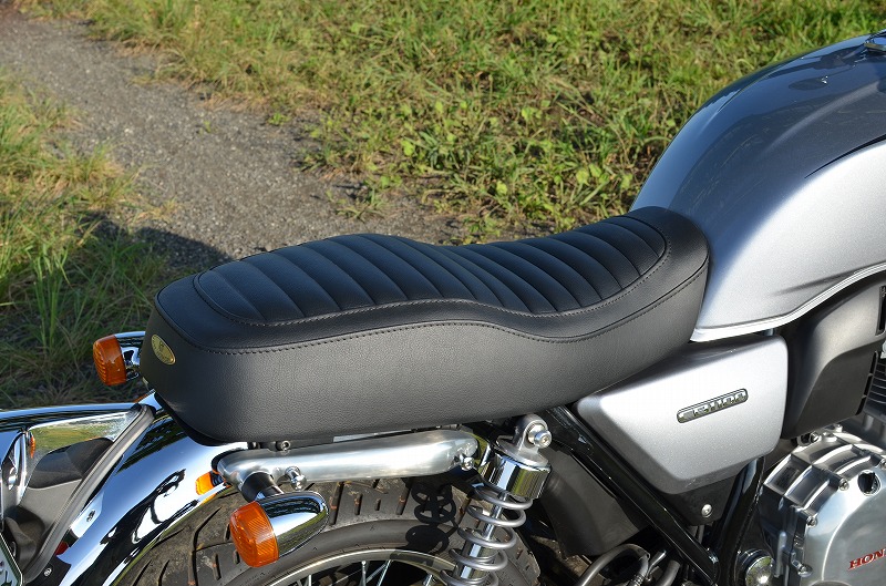※ご注文に際しては装着車両モデル・年式の確認が必要です。注文備考欄に入力をお願いします。適合車種:〜2016年 CB1100EX 17Lタンク・純正シートに対し座面の傾斜や幅、高さ、形状を見直したCB1100 17Lタンク専用シートです。ライダー側・パッセンジャー側ともに充分なスポンジの厚みと幅を持たせ、座面の傾斜も見直し。タンデムツーリングをする方にもお勧め、ソロツーリングの際は荷物の積載もし易くなります。・乗り心地が良くなるよう着座部分の幅はある程度確保し、足を下ろす部分は幅を細くしてありますので、足つきも良好です。・型の中で発砲させたインジェクションスポンジを使用。クッション性が良く経年劣化が少ないため、長くご愛用頂けます。【ご注意】2018年までのCB1100については、『CB1100 14Lタンク』のカテゴリーからお選び下さい。シート裏側に書類入れはありません。【特徴】シート高:797mm(EX純正シート高785mm)・座面中央ににプレーンブラックのタックロールをはめ込み。縫い合わせのラインはステッチ仕上げ、ライン座面周囲を囲むAタイプ。・タンデムベルトはボルト止めで標準装備。・取付は純正シート同様キーロック方式。・純正キャリア・トップボックスとの併用も可。